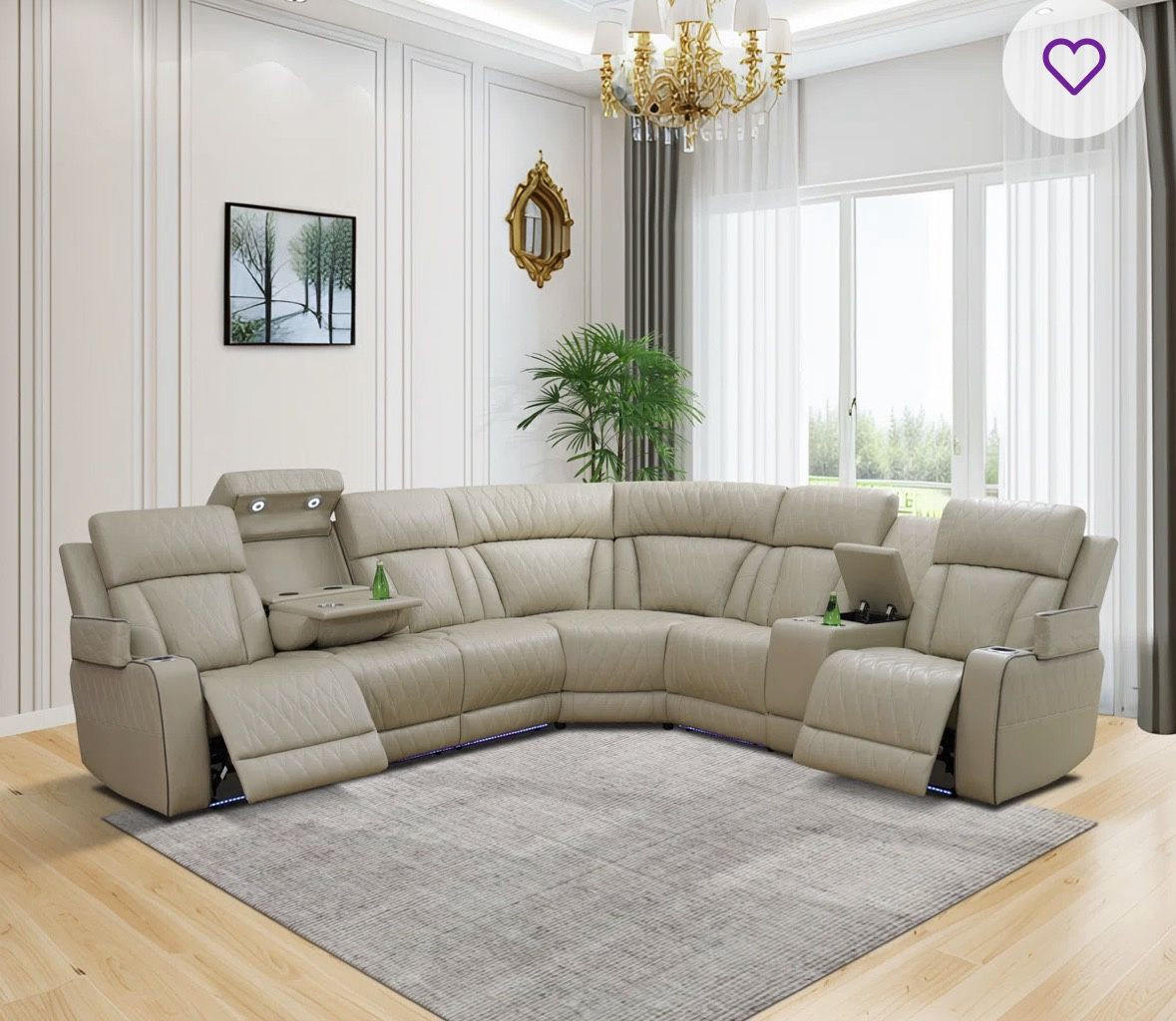 Brand New in box. Never opened. No delivery. Pickup only! About This Product w11(contact info removed) Mason Sofa, Loveseat Recliners with Wedge - Upgrade your living space with this multifunctional and luxurious recliner set with wedge for extra seating or leg room. Each piece is crafted from high-quality breathable leather, it offers a 160-degree recline with the push of a button. The Sofa features armrest storage for convenience, there is a flip up coffee table and a flip up overhead reading light whe... See More Features • Beige Breathing Leather Electric Push Button Recliner • Foam with double coilspring • USB Port • LED beads underneath • Reading Lamp • armrest storage