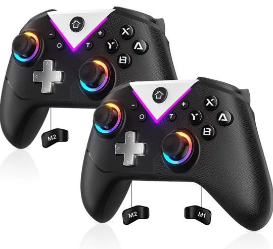 Brand-new & unused – in original box! Dinosoo 2 Wireless Controllers for Nintendo Switch and PC • Compatible with Nintendo Switch 2/1, Lite, OLED, PC, iOS, and Android. • Hall effect joysticks and triggers for enhanced precision. • 4 levels of adjustable rumble (0%, 30%, 75%, 100%). • Customizable back buttons for personalized control. • 20-hour battery life with a 1000mAh rechargeable battery. • Supports wake-up function on Switch 1 (not supported on Switch 2). • Ergonomic design with non-slip grip for comfortable gaming. • Plug-and-play setup with no additional software required. 📍 Located in 7500 Wicker Drive, Fort Worth, TX 76133. Pickup available or optional delivery for $5 extra within 20 minutes distance.