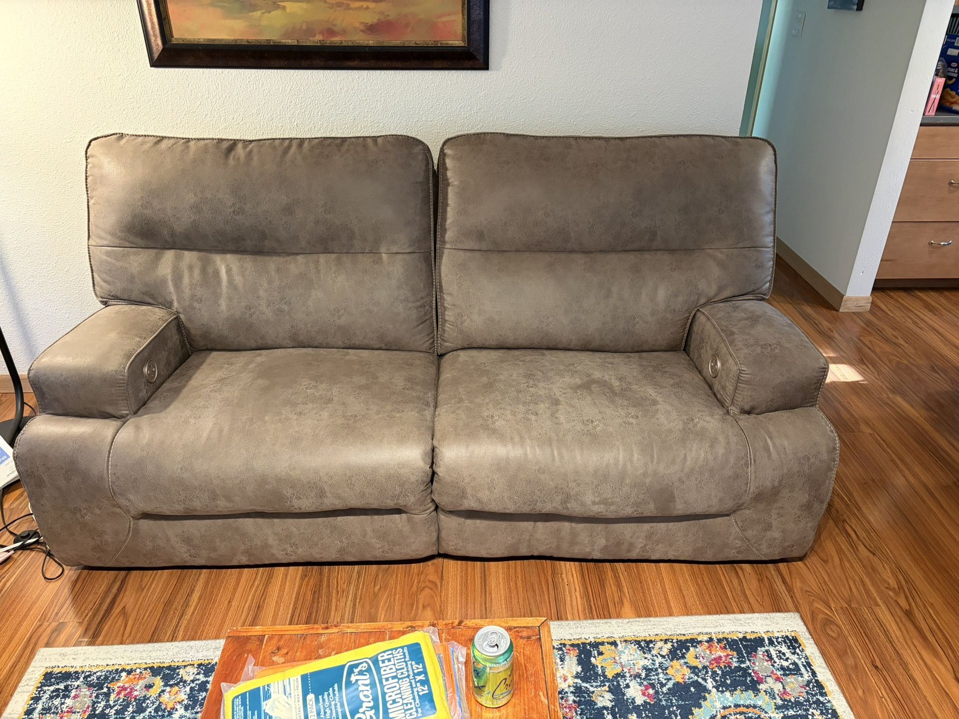 I have two couches for sale, they are identical. Powered reclining, cell phone charging ports on each end. I bought them about a 1.5 years ago. They take up to Much space in my house. They are both in good shape.