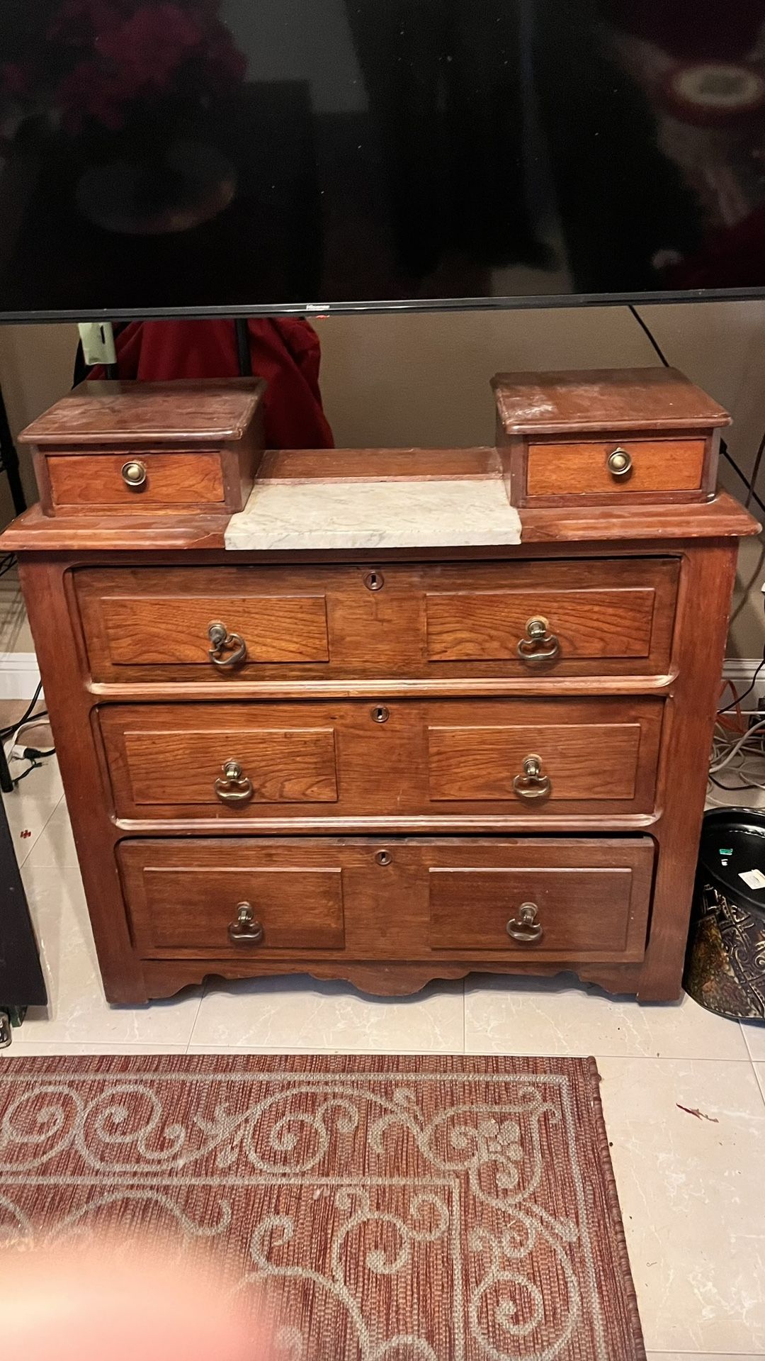 Antique Step Back Dresser Chest Marble, Glove Box Drawers