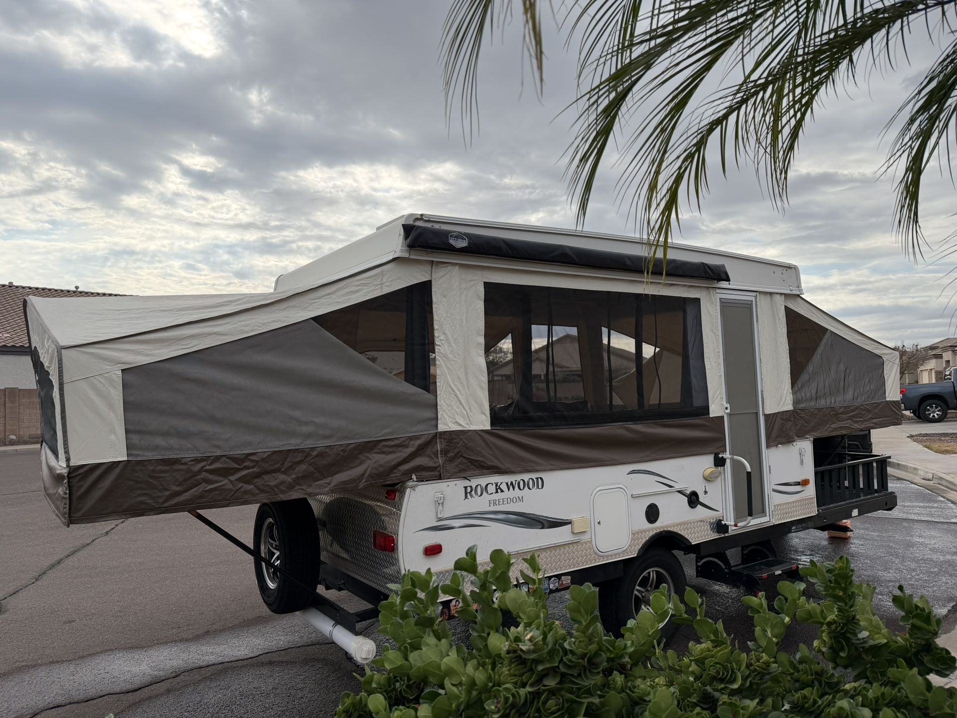 2014 Rockwood Freedom 232XR – Clean, Upgraded, Ready to Camp Well-maintained family pop-up trailer. Always stored under cover in shaded yard. No leaks. Not a project — ready to use. - Sleeps 6 (king, queen, and a dinette) - Added LED lights under frame for walkway lights - Easily pulled by SUV or light duty truck - Canvas in great condition - Electric winch lift (maintained, no cranking) - 2× 12V deep cycle batteries - 100W portable solar panel (30’ cord – park in shade, panel in sun) - Electric brakes w/ 7-pin connector - Full LED light conversion (inside & out) - Aftermarket awning - Upgraded switch/control panel (expandable) - Interior kitchenette removed for major storage upgrade - Good tires + matching full-size spare - Clean exterior, no cracks, all lights working - Vault toilet Minor interior blemishes but overall very good condition and ready for a trip. Great family floorplan. Simple setup. Lightweight and easy to tow. $8,500 OBO Clean title in hand.