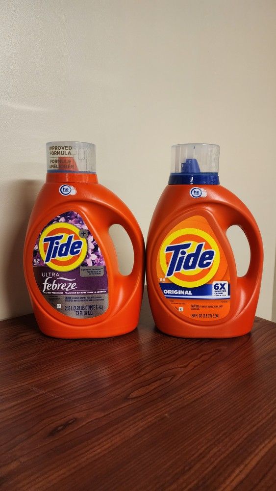Tide Liquid Laundry Detergent is tough on stains and odors while keeping your clothes looking bright and fresh. One wash is all it takes for clothes that look cleaner and smell great. Compared to typical retail pricing of $12.97 (Walmart), you will be getting a deal for only $12 each. Scents Available: Ultra Febreze (Spring & Renewal) [73oz] Original (80oz) Please feel free to reach out on any inquires on this listing or others. Pickup Only