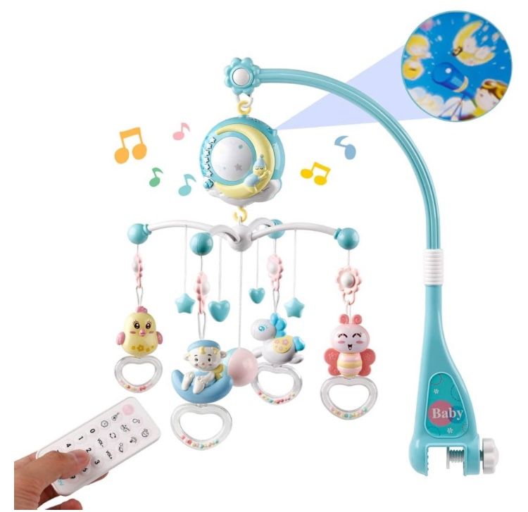 Mini Tudou Baby Musical Mobile Crib with Music and Lights, Timing Function, Projection, Take-Along Rattle and Music Box for Babies Boy Girl Toddler Sleep