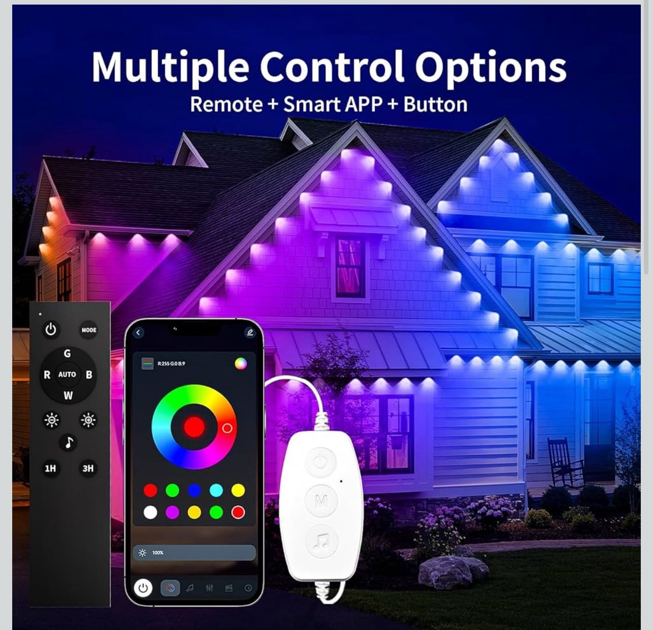 Permanent Outdoor Lights for House, 50ft Smart RGB+IC Eaves Lighting with App