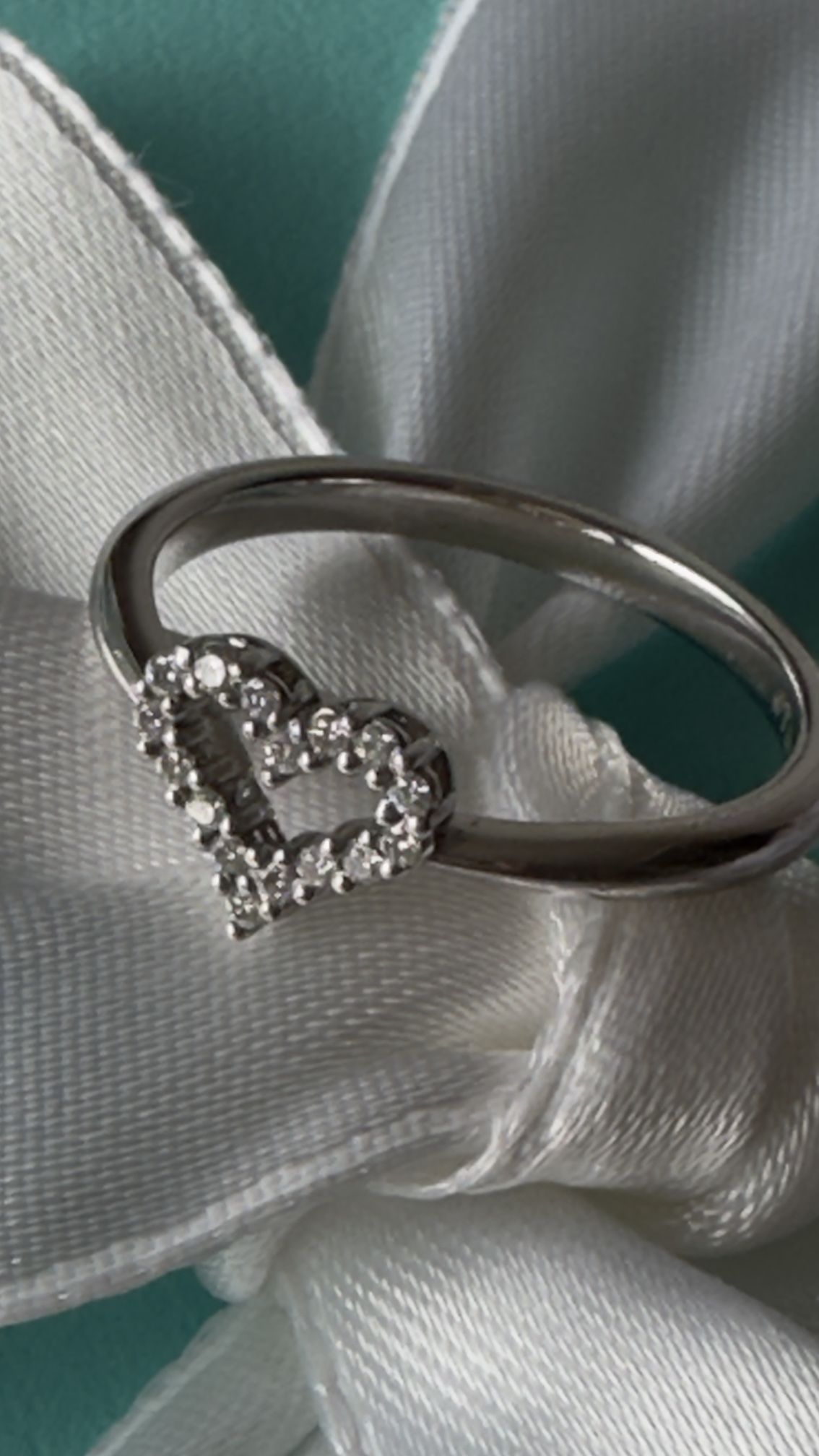 Tiffany & Co. Heart Diamond Ring Platinum Description & Details: Ring in Platinum with diamonds. • Platinum with round brilliant diamonds • Size extra mini • Carat total weight .06 Weight 2g Size US5.65 (between 5.5 to 5.75)