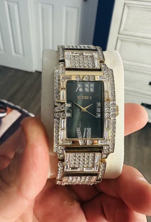 Elgin Fully Iced Out Watch Stainless Steel Retails $220
