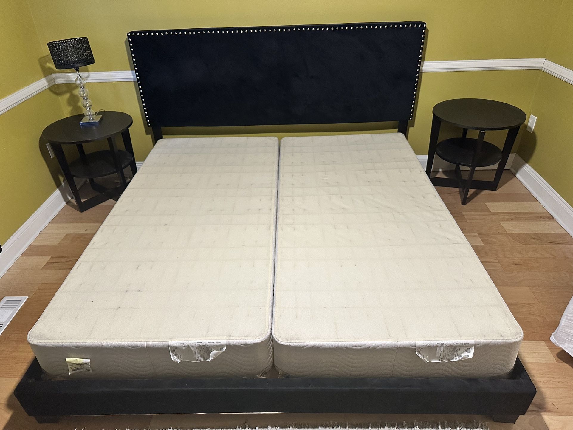 King Bedframe with box springs and 2 side tables. $350. You pick up. Cash only!