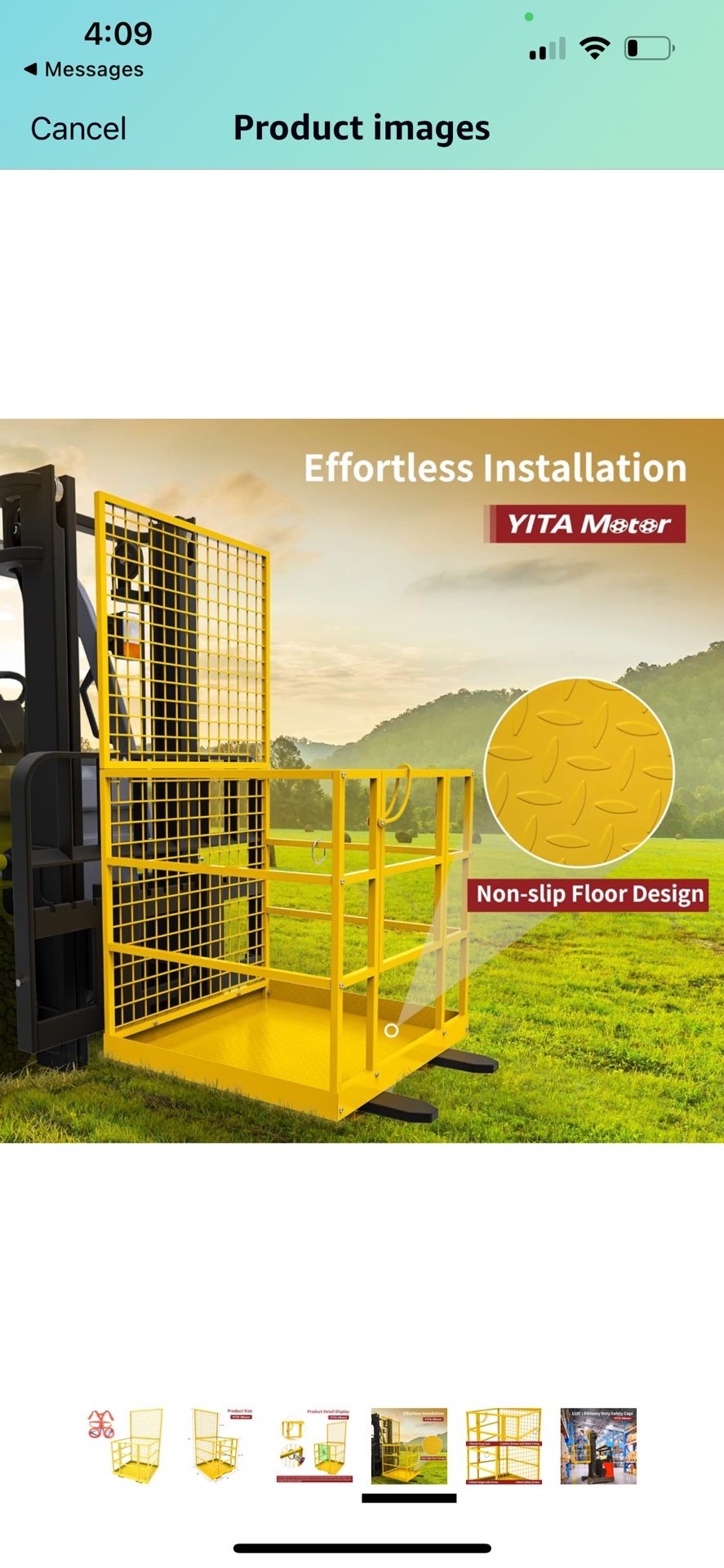 43"x45" Forklift Safety Cage, 1300 LBS Yellow Capacity Forklift Work Platform with Safety Harness, Collapsible Lift Basket Aerial Platform for Lifting Loader