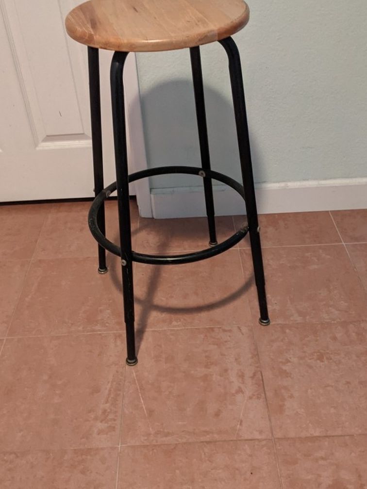 Vintage metal stool with wood top 28"h, seat 13" One only, as is, price firm