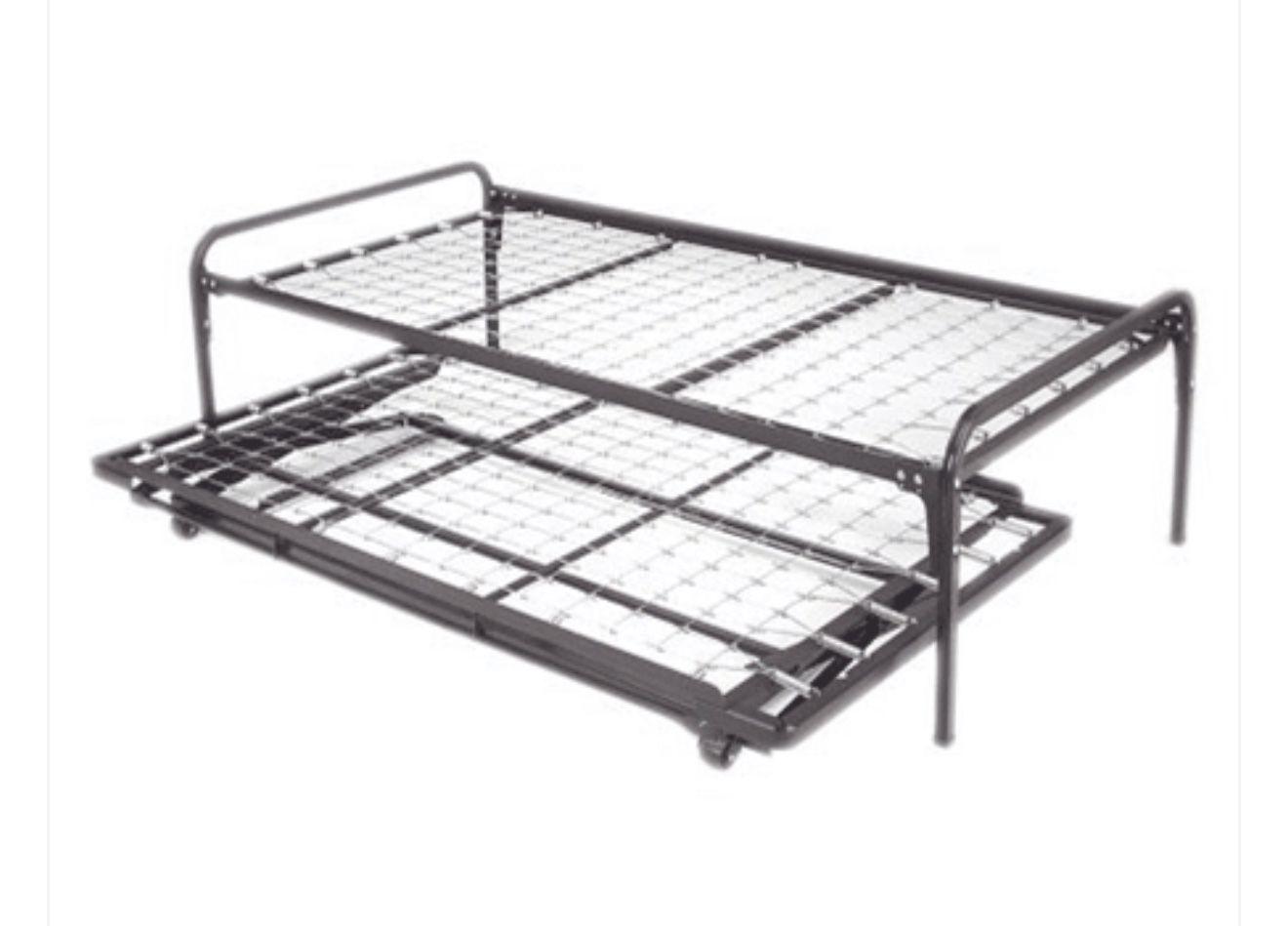 Metal twin frame with a roll out pop-up trundle.
