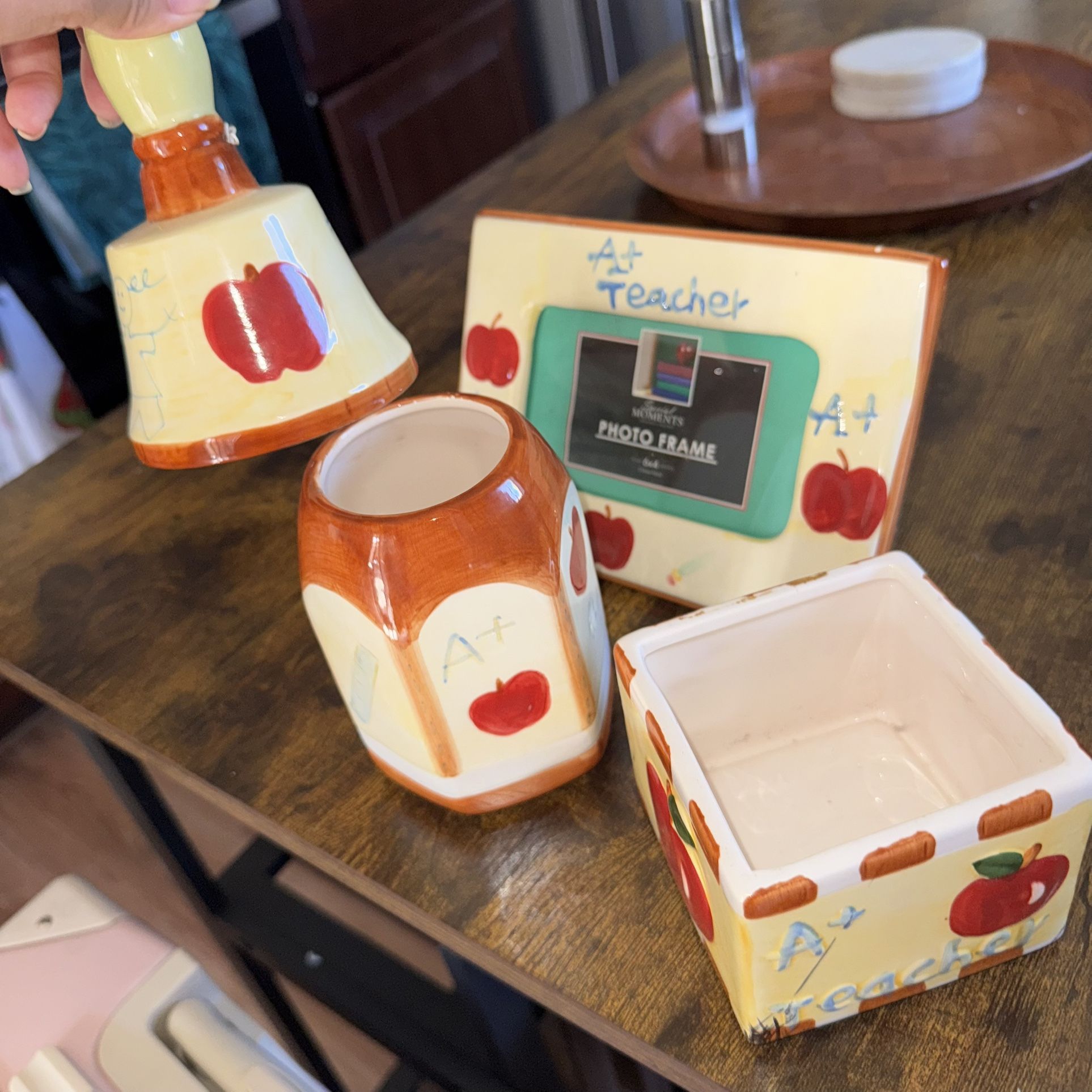 Cute Teacher Appreciation Classroom Decor Set! Picture frame Bell Pencil Holder Sticky Note Holder (Has some markings with marker but this may come off? Haven’t tried)