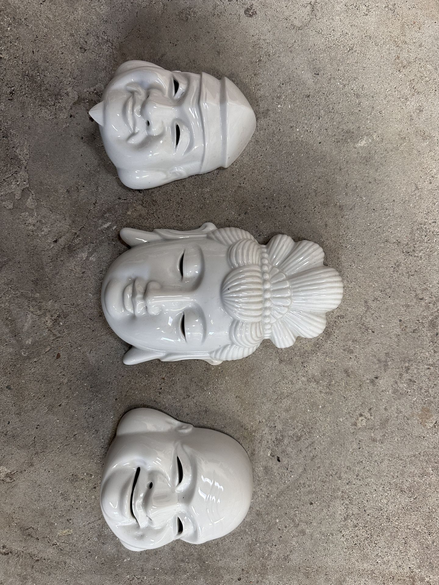 Quan Yin Goddess and other masks Made of ceramic , maybe porcelain.