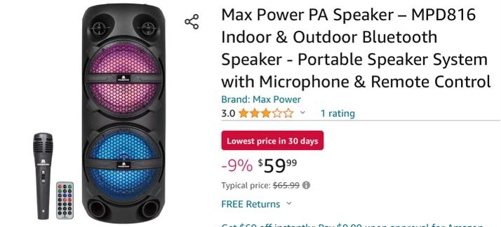 NEW Max Power PA Speaker - MPD816 Indoor & Outdoor Bluetooth Speaker - Portable Speaker System with Microphone & Remote Control