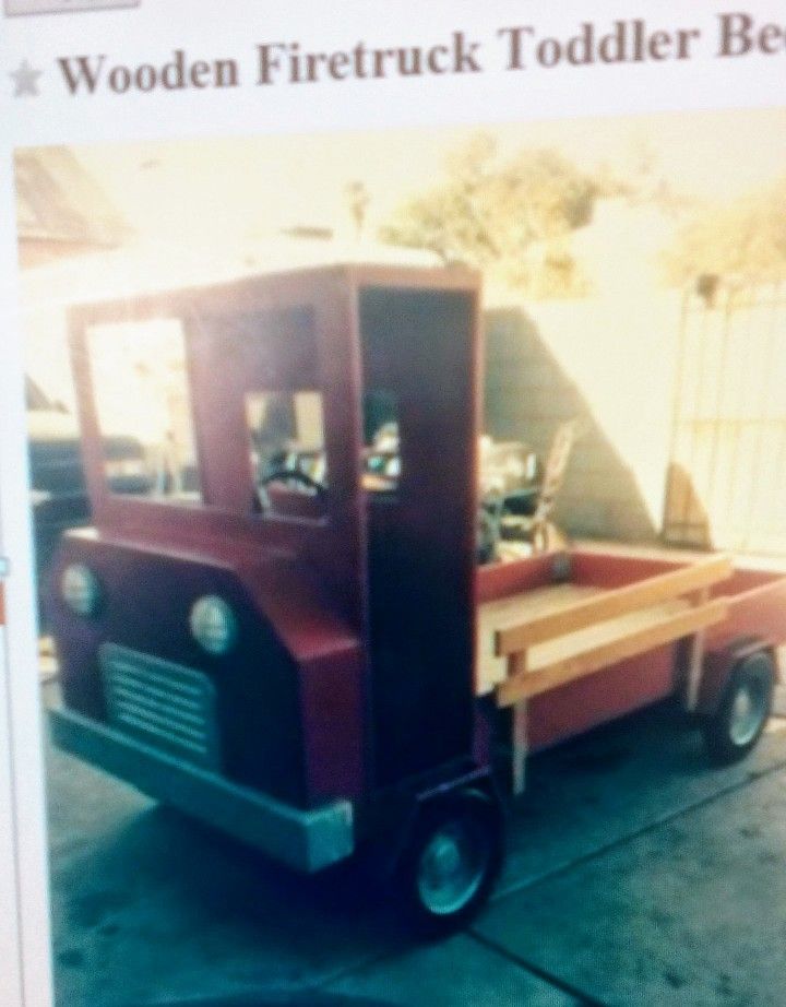 This is a project truck bed made out of wood. If you are handy and or know someone who works in construction this can turn out really nice. Originally bought it in red and painted blue. Unfortunately we never completed it as I needed that handy man! I have the four tires, rails...etc. Selling for $80.00. I paid a lot more for this...