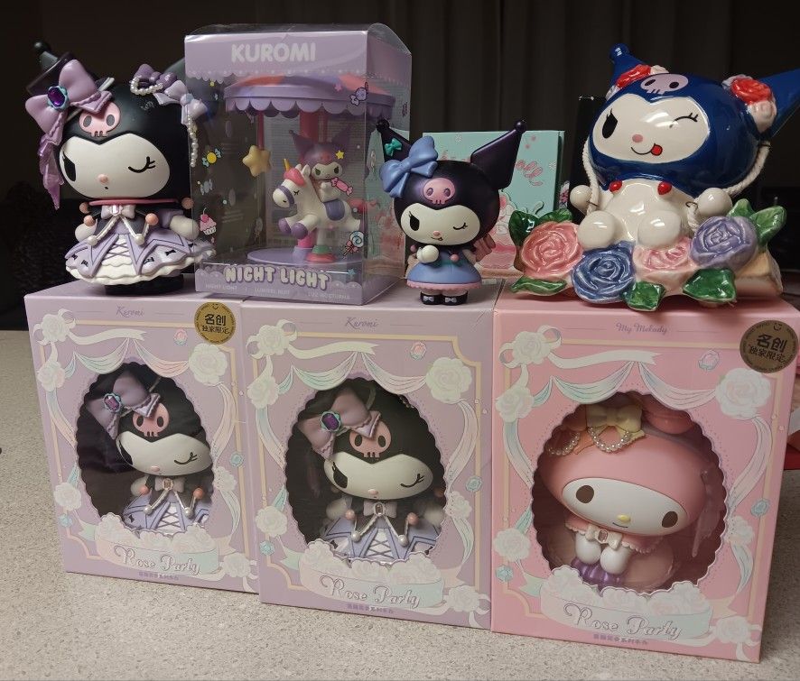 My melody & kuromi rose party asking for all as seen on photo $ 60 Or $15 each in box & $ 6 for figures with its original package For more info .. on items feel free to msg me & we'll go from there.
