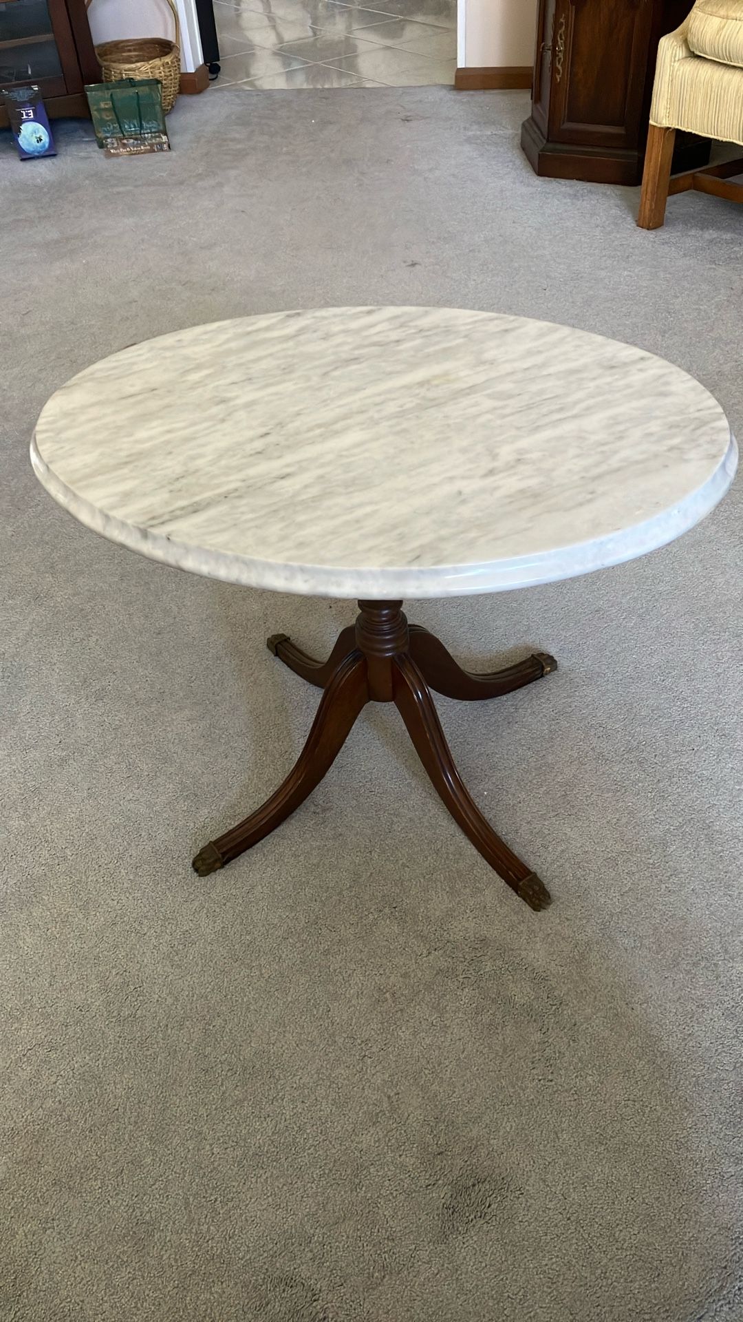 Small chair side coffee table made of real marble and wood. 26” long x 20” wide x 19” tall Fantastic condition