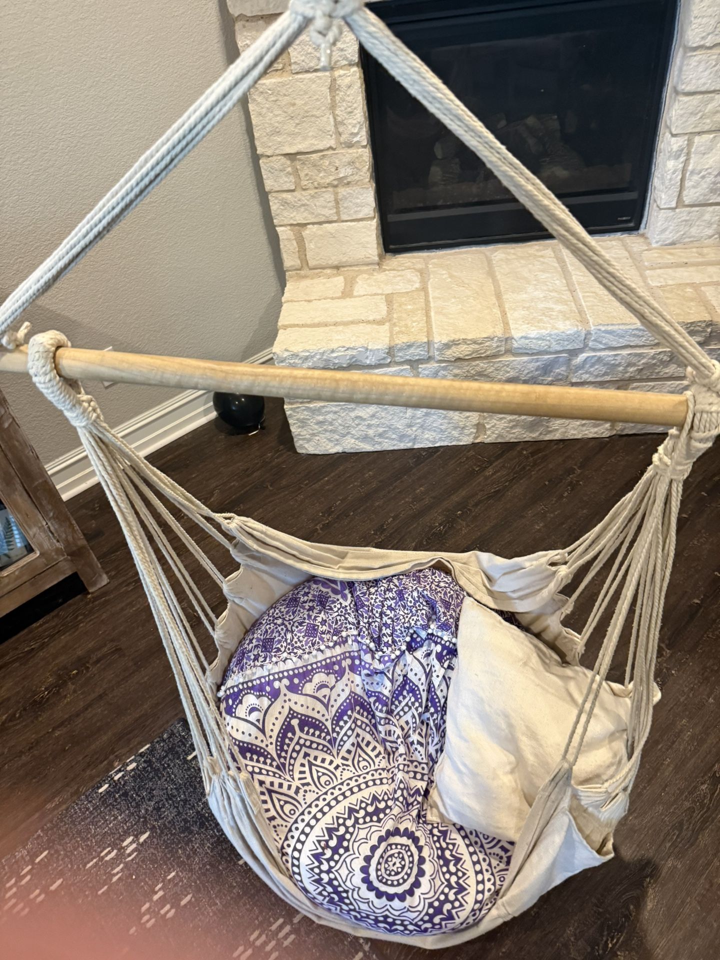 Hanging chair from ceiling. Used by my daughter periodically. The past two years has been hanging in her bedroom with no use. Used primarily for reading or a change in seating.