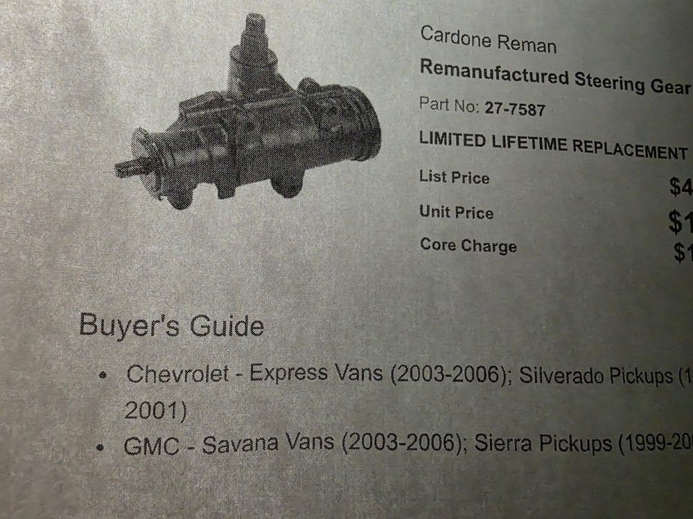 No core needed. Reman. Cardone 1999 to 2001 chevy p/u 2003 to 2006 gmc Havana 2003 to 2006 chevy express Yukon and suburban