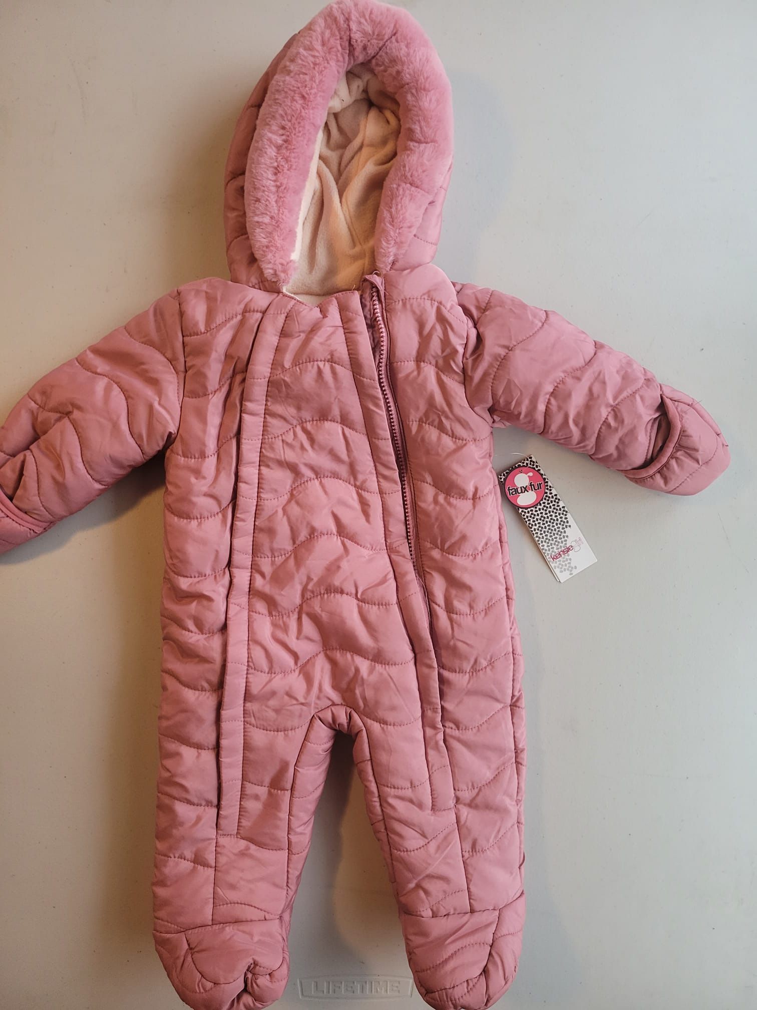 Pink snow suit 3-6 months brand new $15 Dog suit nb - 6 months-$10 Red suit-3-6 months$5 Blue suit- NB-3 months $5 Pink suits nb-3 months $5 each Blue and green jacket 18 months-$10 Black snow suit -12 months-$10 Pink suit suit-3 month -$5 White snow suit- 6 months -$5 Dinosaur jacket- 2T-$10 Pink jacket-12-18months-$10