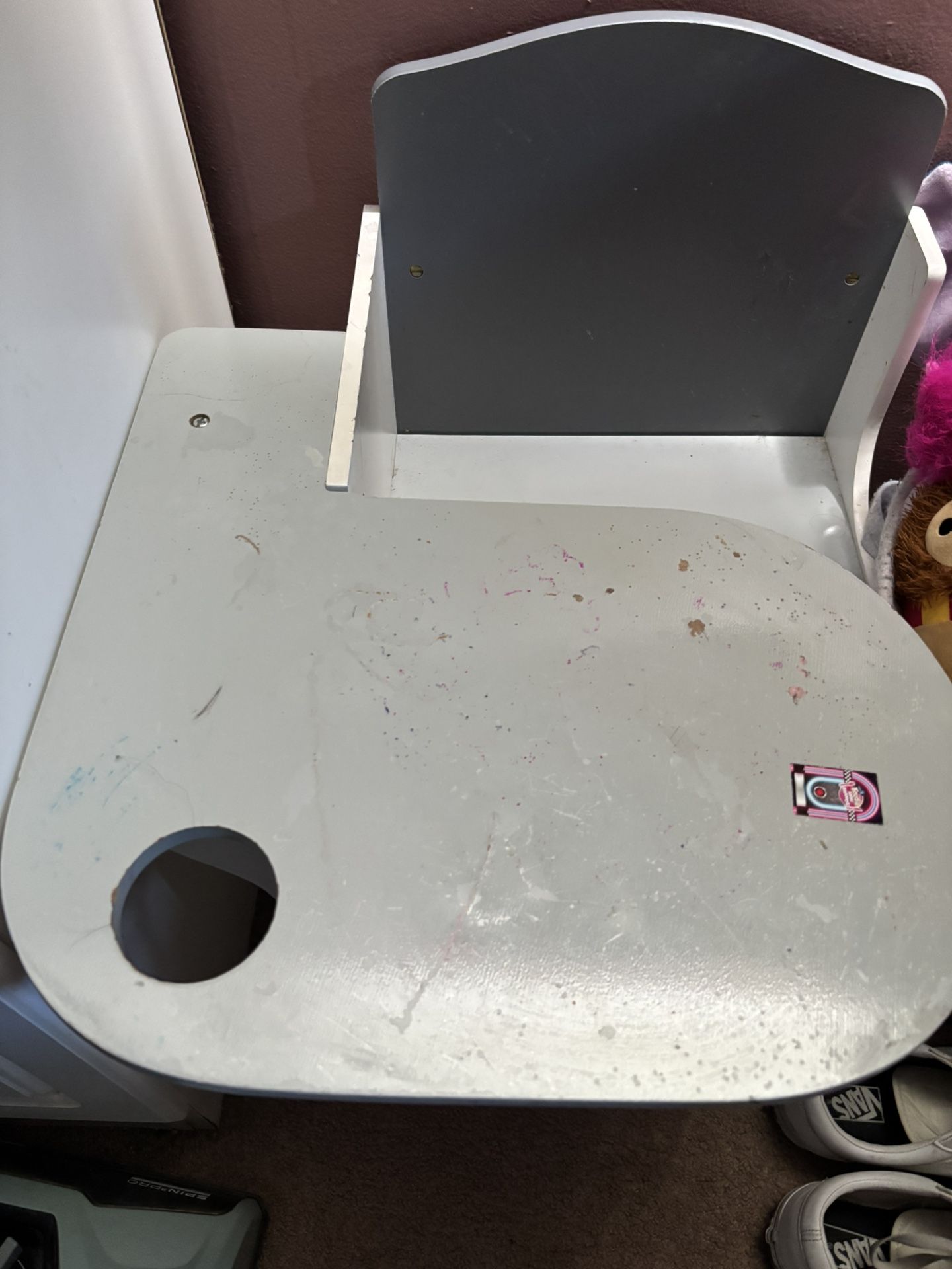 Gray kids wooden desk. Has some normal wear and tear but still functions great! Great for toddlers! Price is negotiable.