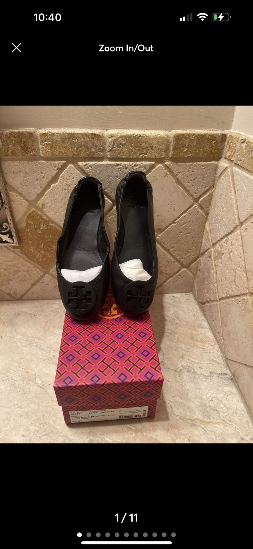 Pre owned worn 1 time only. Tory our h ballet flats. All black. 100% authentic . Purchased from Nordstrom.