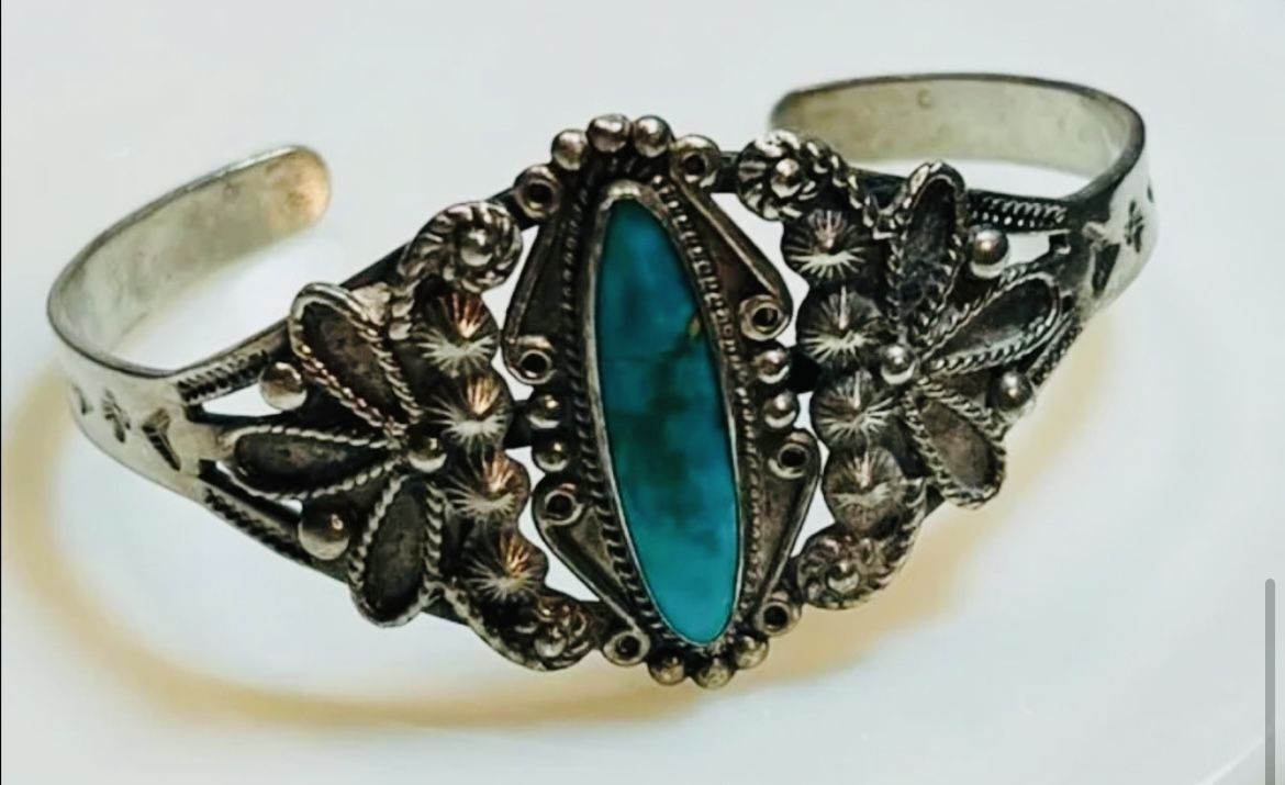 VINTAGE Mexico Sterling Turquoise Cuff Bracelet - 20 grams