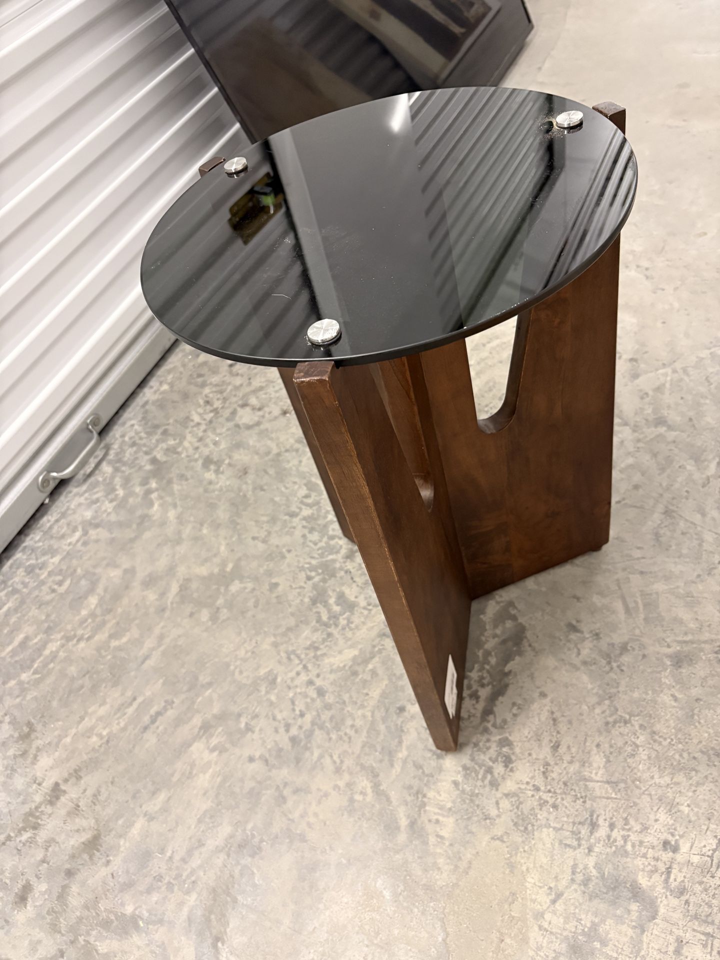 Modern Round Glass Top End Table with Wood Base