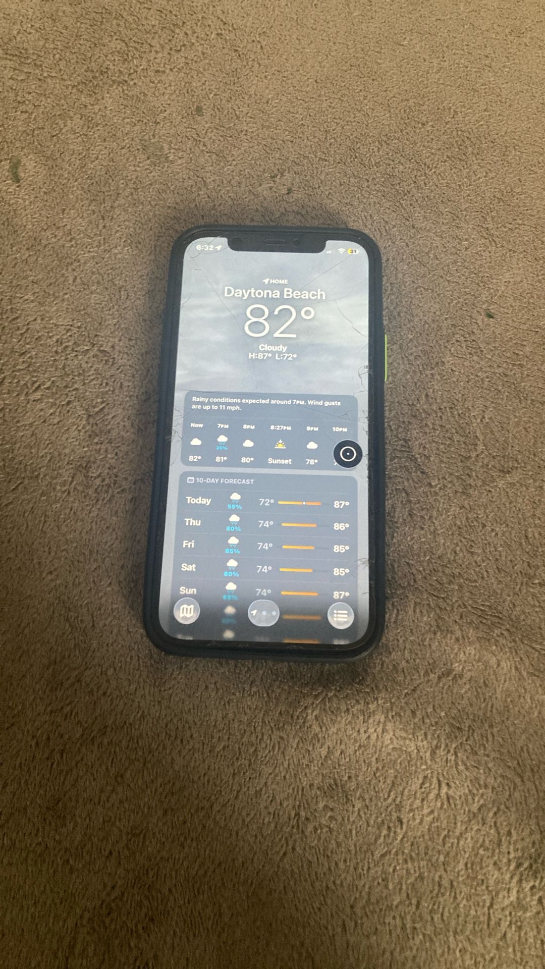 Cracked on the back but screen is flawless. Comes with 3 Screen Protectors and a case.