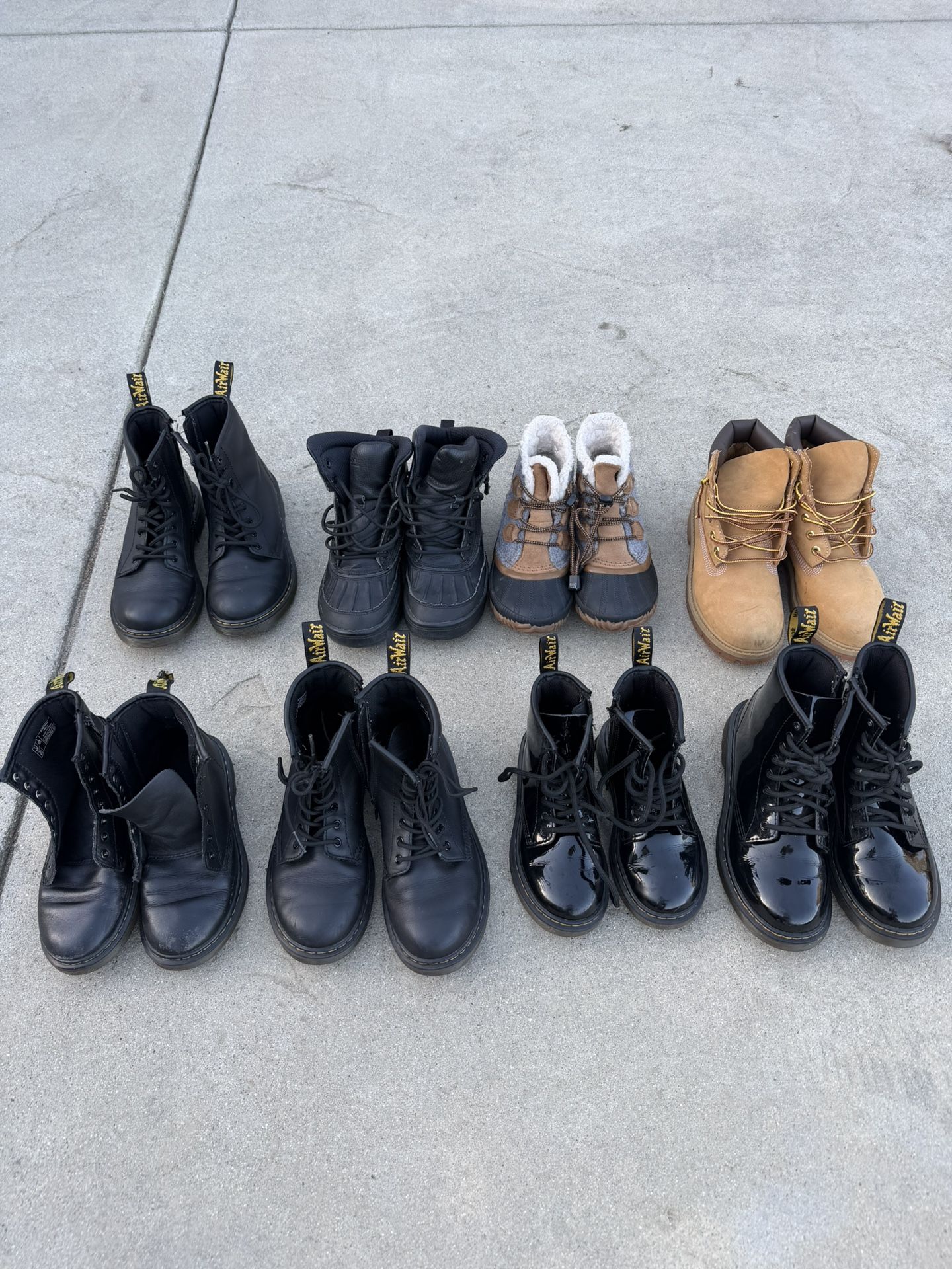 Multiple boots in different sizes Docs Size youth 11, 1, 2, 3 and 4 Nike ACG boots size 4Y Sorel youth 4 Timberland youth 3