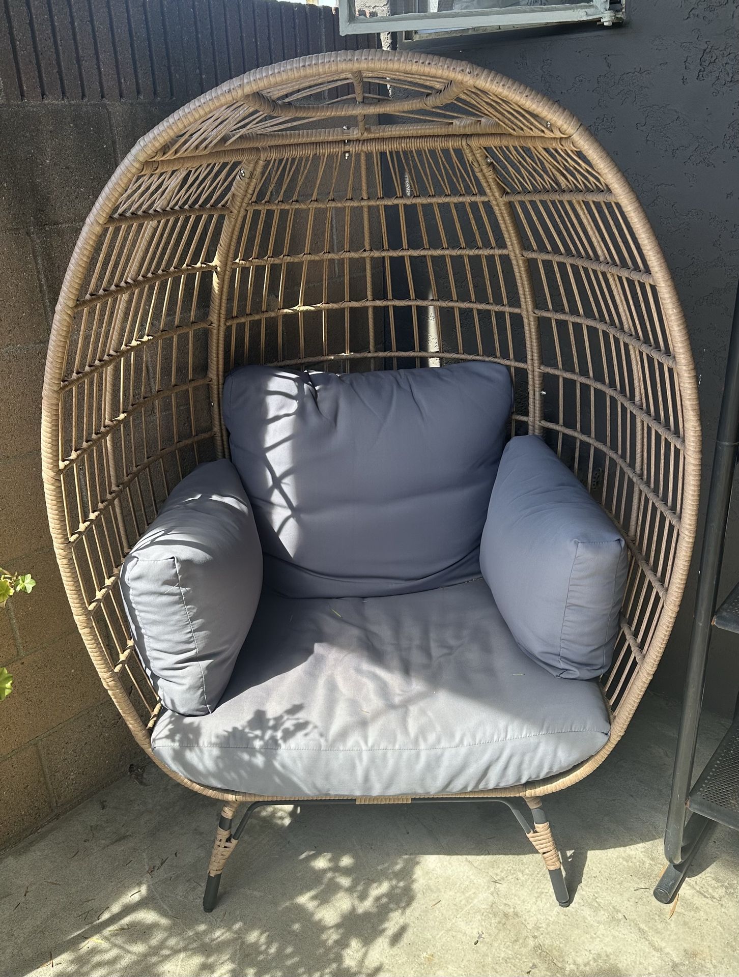 Outdoor Egg chair, in great condition The seat cushions need to be washed Otherwise. Nothing wrong with it , all the rattan is great No Breaks