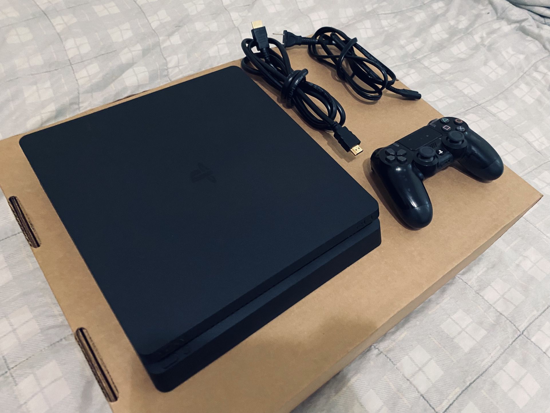 Sony PlayStation 4 PS4 slim items include: Console Controller HDMI cord Power cord What you see in photos is exactly what you will be receiving. Item is adult owned fully functional in excellent condition. Works like new! Comes from pet free smoke free environment. Serious buyers please message me when you’re ready to come and purchase $90 FRIM I accept cash or Zelle thanks for looking