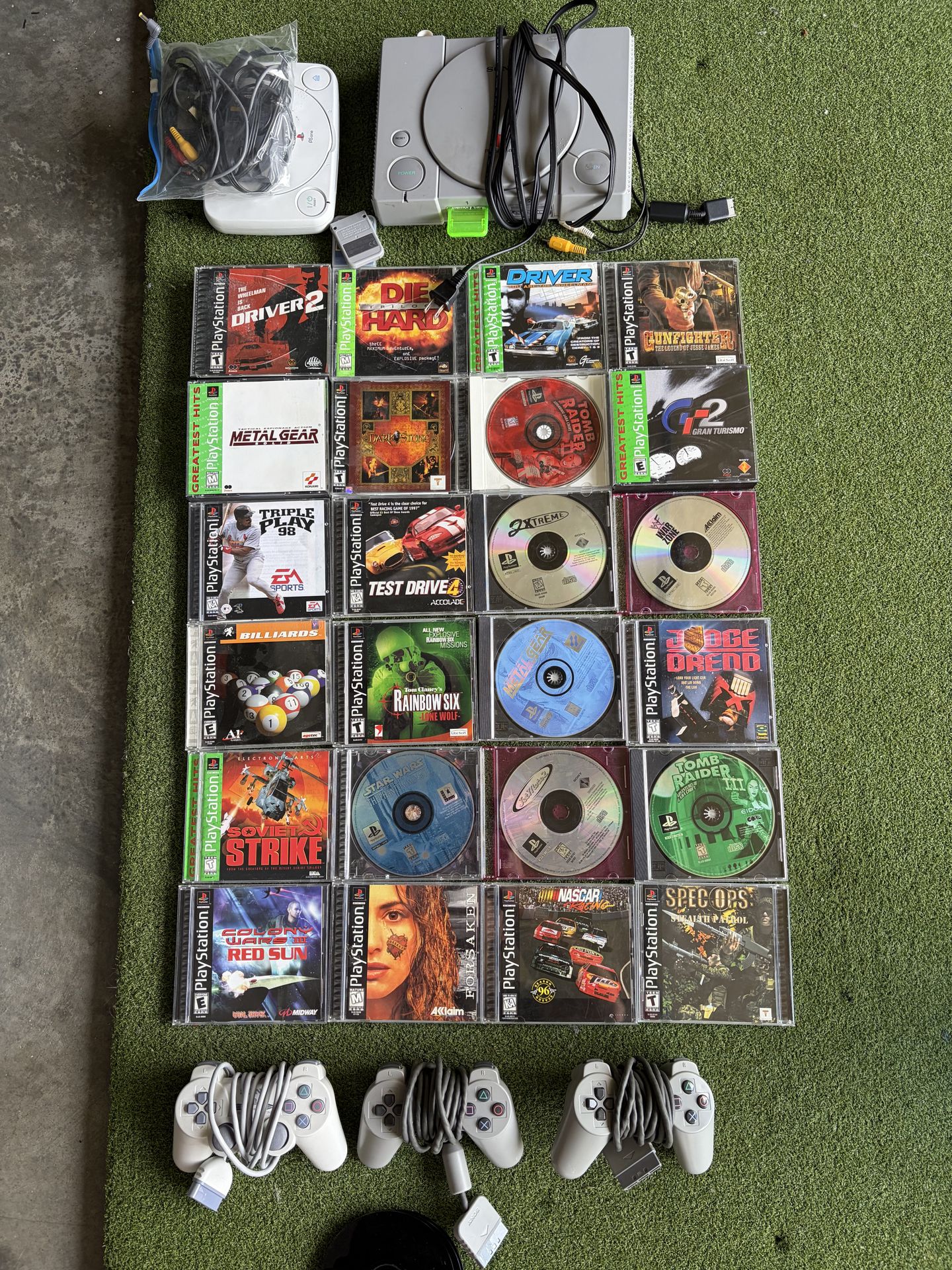 2 different versions of the PlayStation 1. Both work like new. Multiple memory cards included. Multiple controllers. Lots of games. Hit me up with any questions! Will sell things separate if requested.