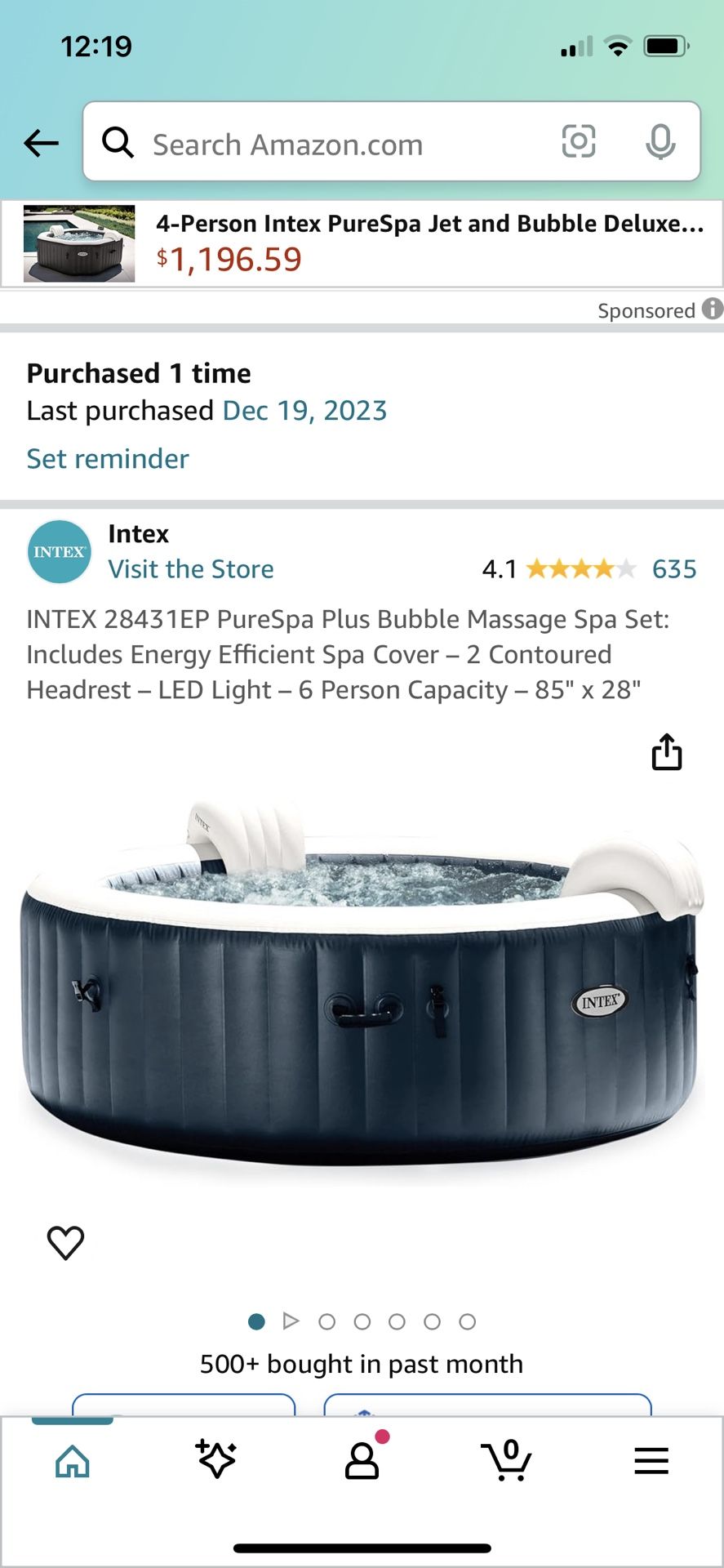 INTEX 28431EP PureSpa Plus Bubble Massage Spa Set: Includes Energy Efficient Spa Cover – 2 Contoured Headrest – LED Light – 6 Person Capacity – 85" x 28" Like new - purchased Dec 2023, used about 10 times.