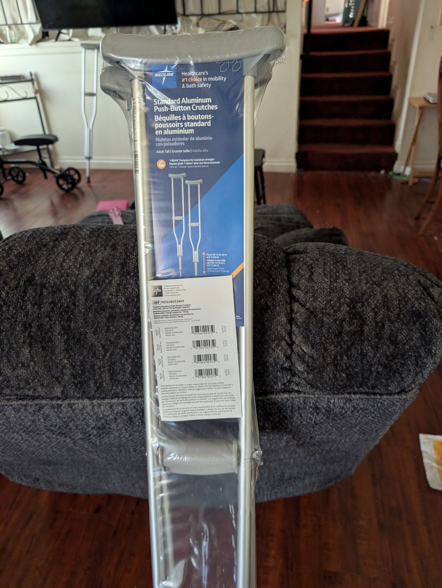 Tall aluminum crutches. Fits 5 ft 10 in to 6 ft. 6 in. Brand new in packaging