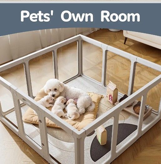 🔥 NEW IN BOX! 10-Panel Clear Acrylic Dog Playpen (24" H, White) 🔥 This innovative Jalove Clear Acrylic Dog Playpen is brand new, never used, and still in the original box! It features a modern, transparent design that keeps your pet safe while seamlessly blending into your home decor. Key Features: Modern & Clear Design: Features transparent acrylic panels that offer an open, stress-free space for pets and allow you to easily monitor their safety. Versatile Size: Total dimensions of 50'' L x 33.5'' W x 24'' H (when assembled as shown). The 10-panel modular system allows for customization to fit your specific space and needs. Durable & Safe: Crafted from heavy-duty high-density polyethylene and ABS for long-lasting use. Base suction cups provide a non-slip grip on various floor surfaces. Easy Assembly: Designed for tool-free assembly—simply unfold, connect, and secure the panels in minutes. Includes a convenient door for easy access. Multi-Pet Use: Perfect for puppies, kittens, rabbits, guinea pigs, and ferrets. Made of rust-resistant, paint-free materials that are easy to clean and maintain. Give your small pet a safe, customizable, and stylish play area! Ready for immediate assembly right out of the box.