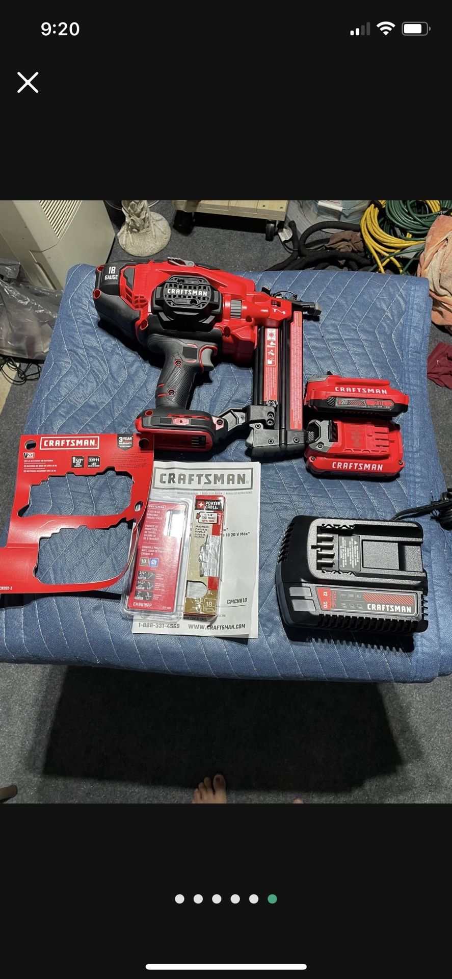 18 gauge nail gun- 2 batteries- 2 boxes of nails- Never used - I bought this for a job and decided not to do it.100 or make offer- I’m coming to the St. Petersburg Jan. 20th. If your interested give let me know, make offer.