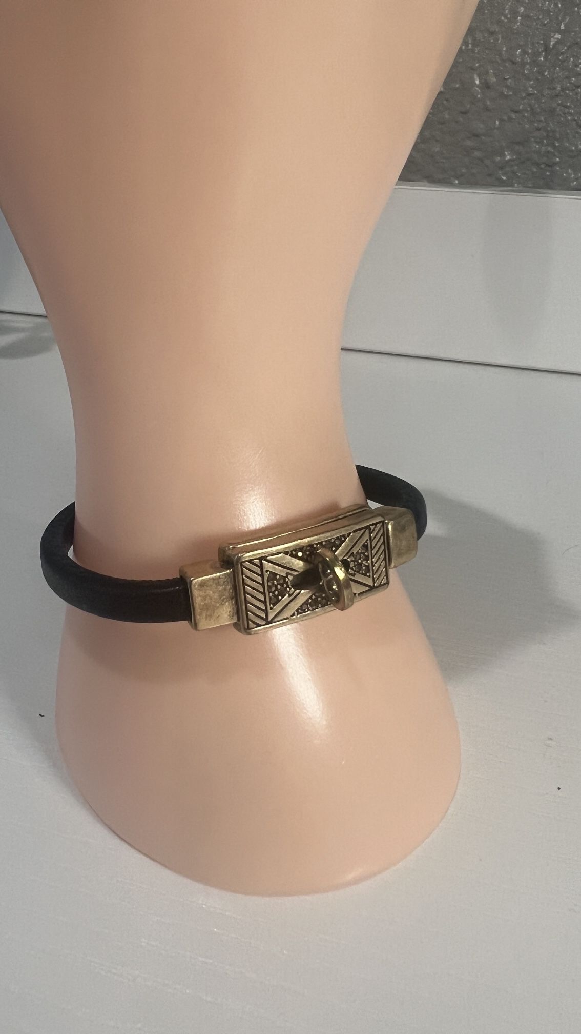 Lucky Brand Gold Lock And Key Black Leather Bracelet