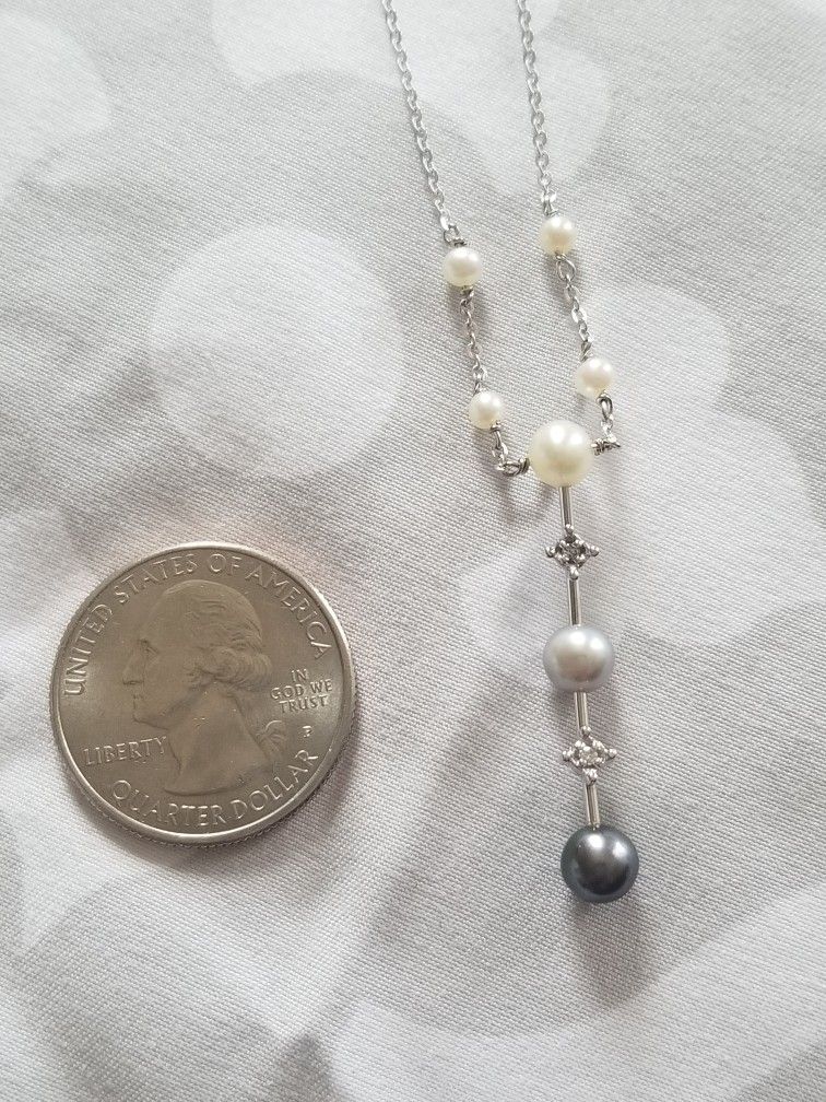 10k White Gold Diamond and Multi Pearl Drop Pendant with 10k White Gold 16" link chain