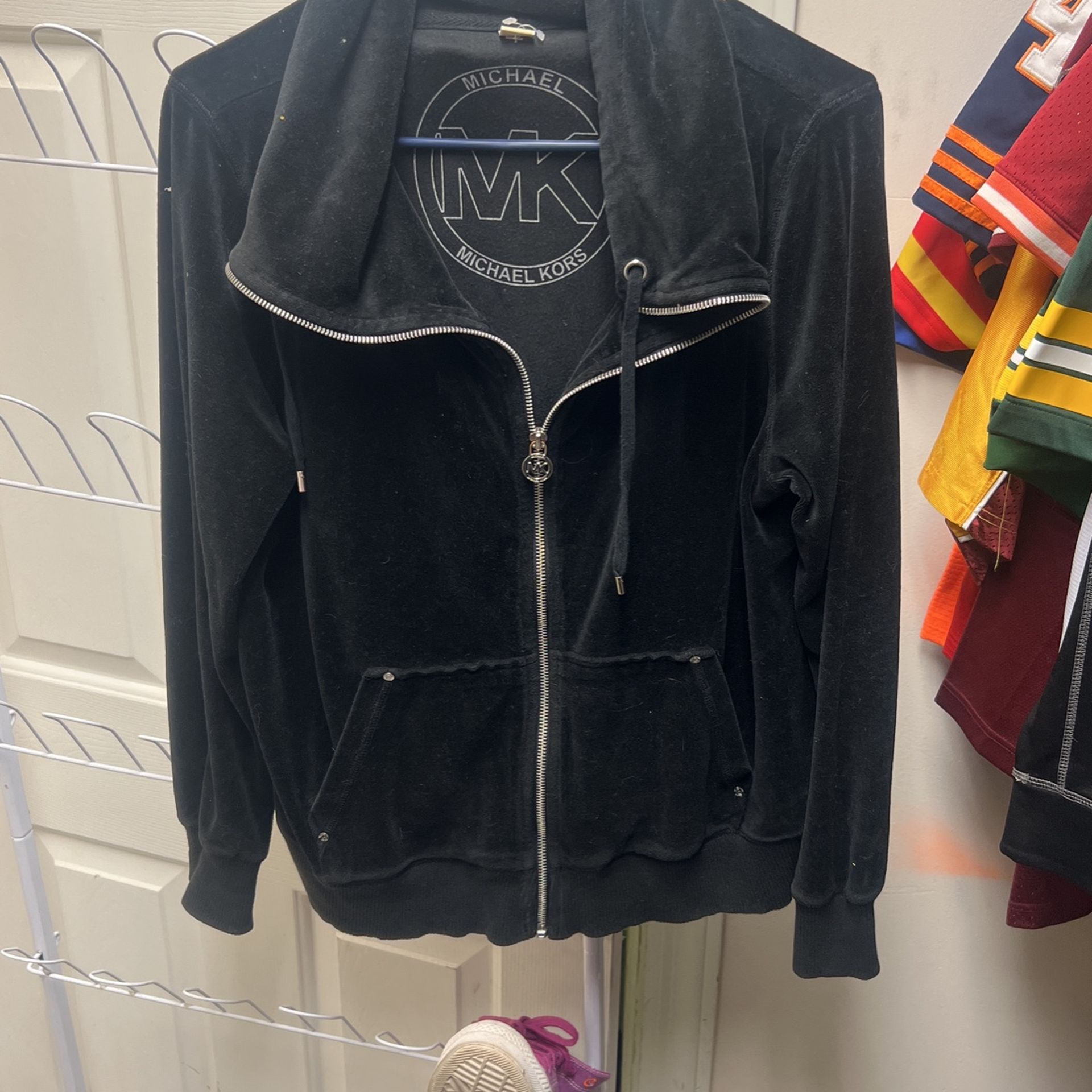 Michael Kors, Black Velour XL Track Jacket