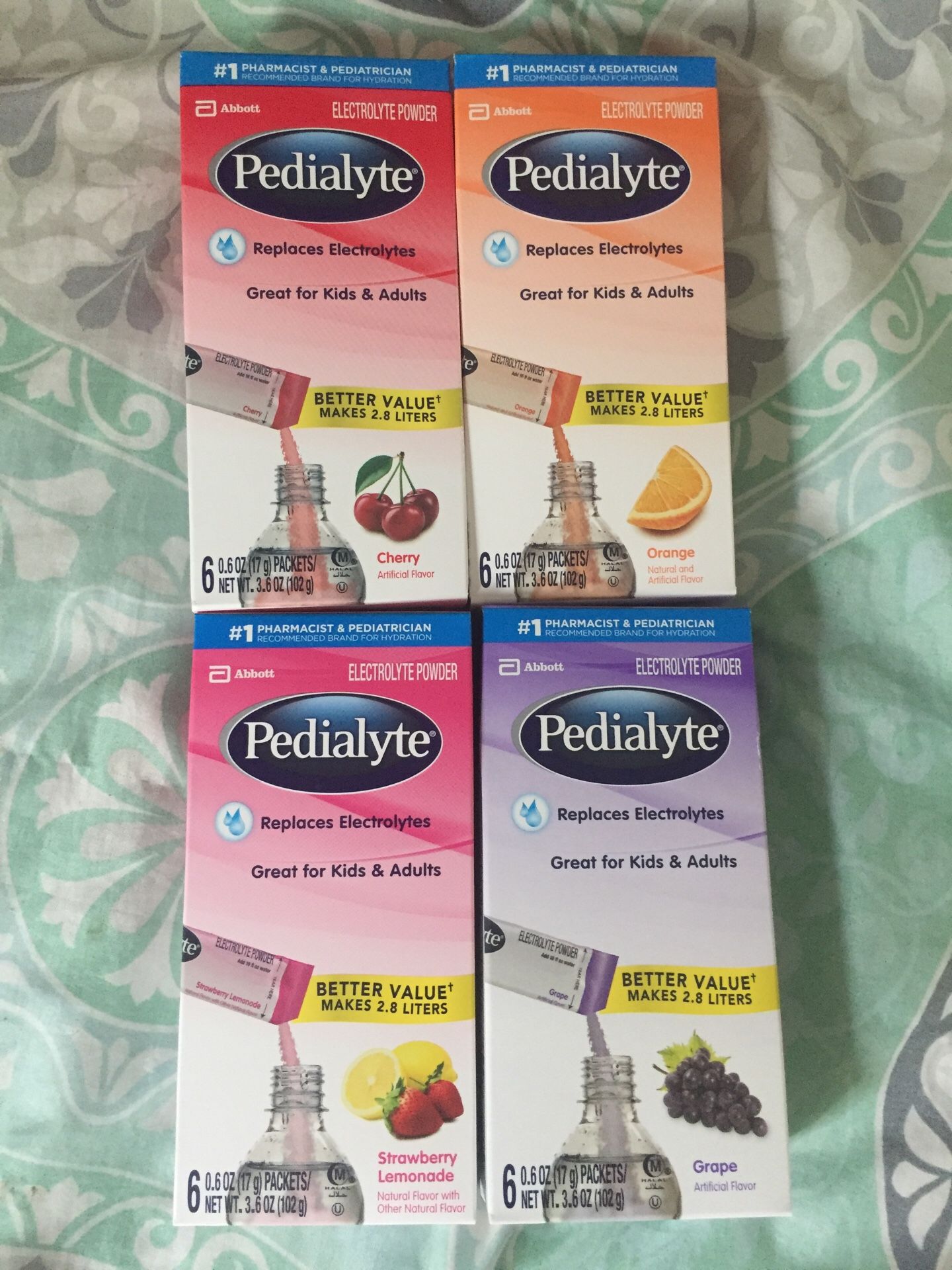 Lot Of 24 Pedialyte Electrolyte Powder, Variety Pack, Electrolyte Hydration Drink