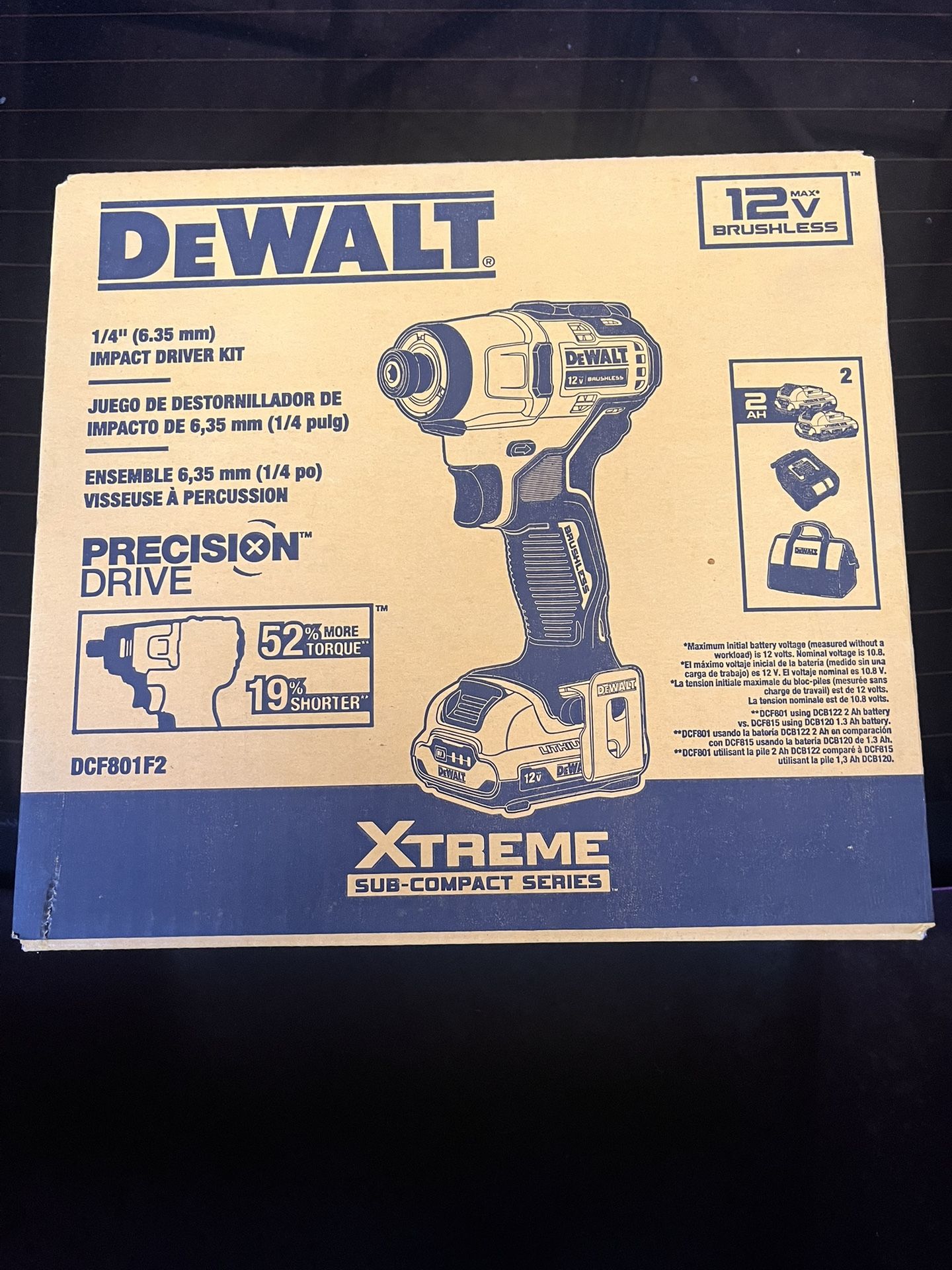 Brand new DEWALT MAX XTREME brushless impact driver kit Includes everything from the kit: • DCF801 brushless impact driver • (2) 12V MAX batteries • Charger • DEWALT contractor tool bag Compact but very powerful impact driver. Great for contractors, mechanics, or DIY projects. Brushless motor for longer life and better battery performance. Message me if interested.