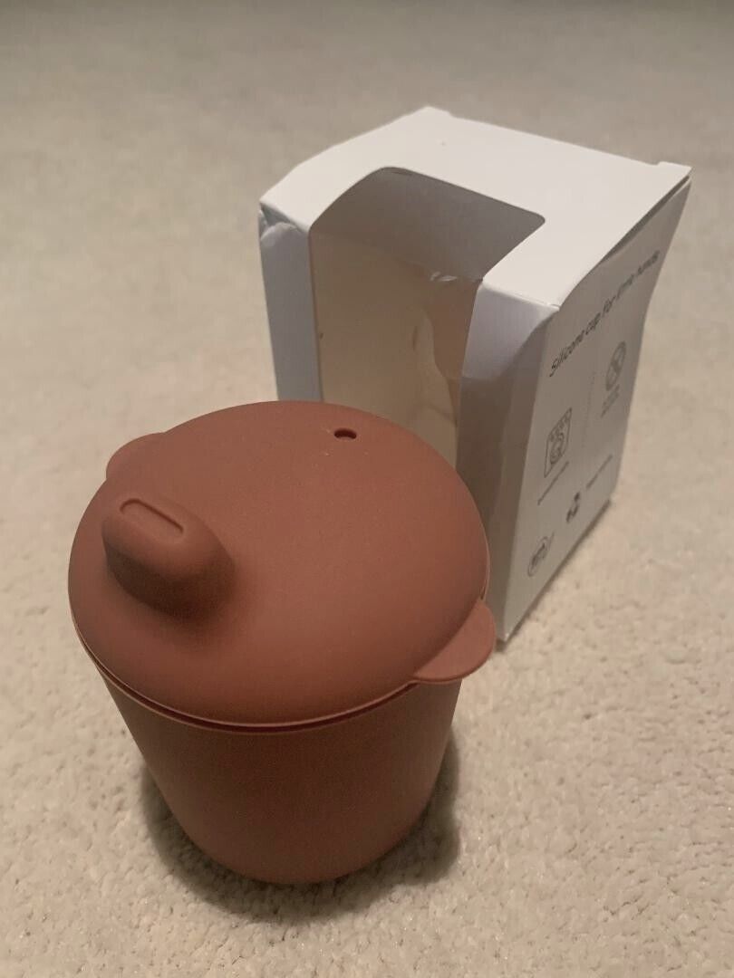 💯 Food Grade Silicone Baby Training Sippy Cup w/ Lid 6 Months+ Pumpkin Brown NIB