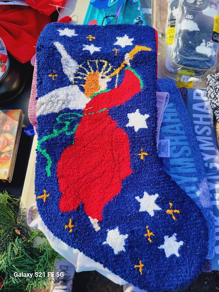 Vtg Embroidered Wool Christmas Stocking
