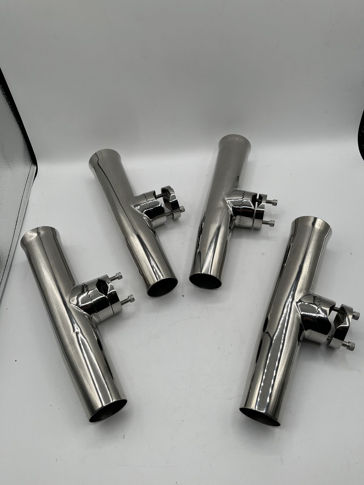 (4x) 7/8" to 1" Rail Mount Clamp-on Fishing Rod Holder, Stainless Steel (EKP)