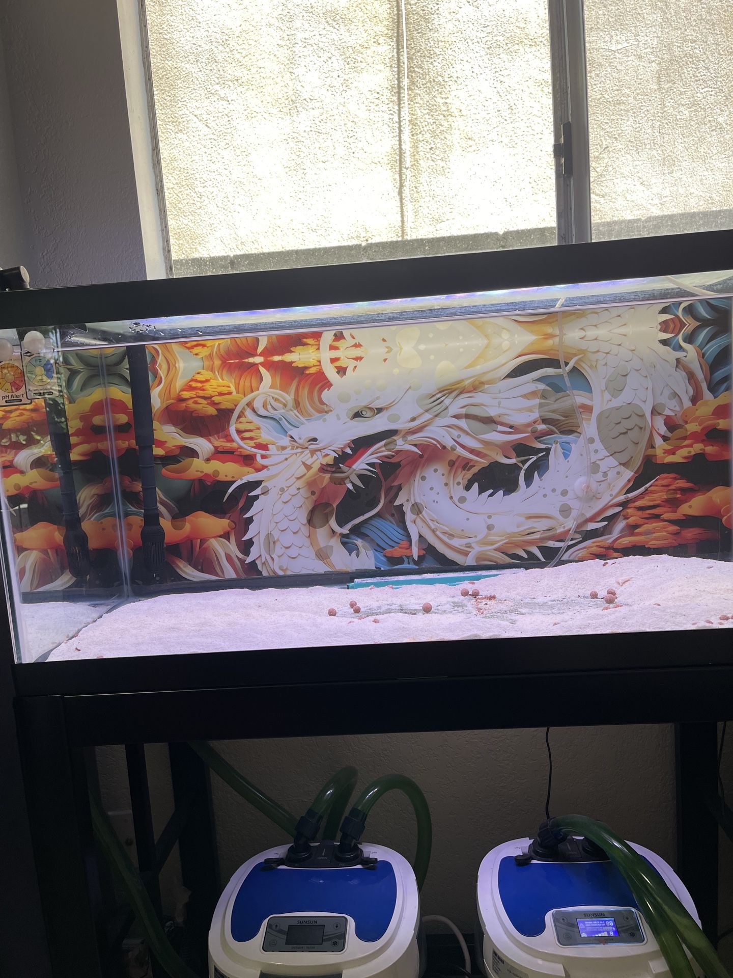 40 gallons fish tank and stand. Driftwood. Light