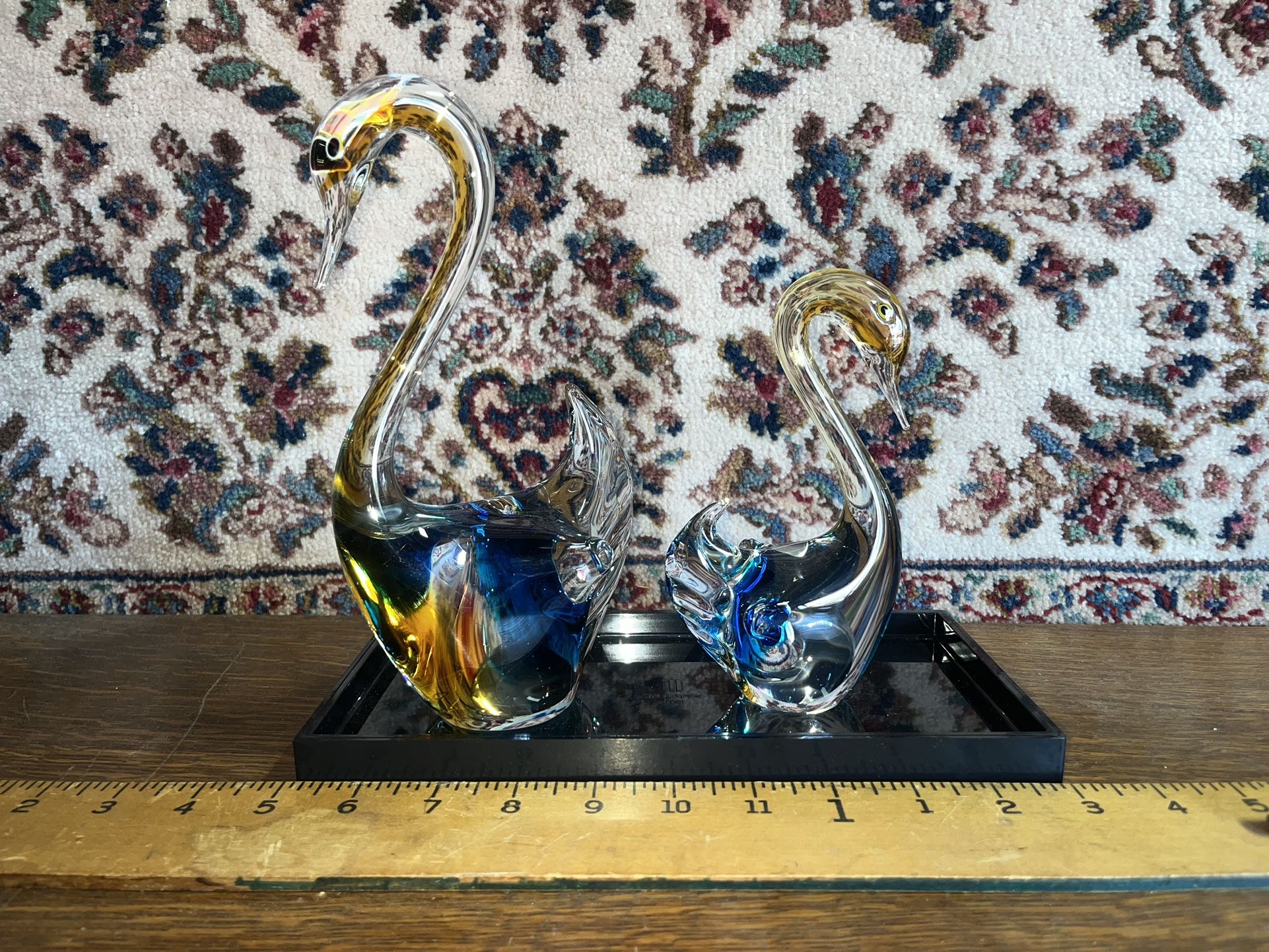 Beautifully aged hand crafted in Japan glass birds and also including black tray.