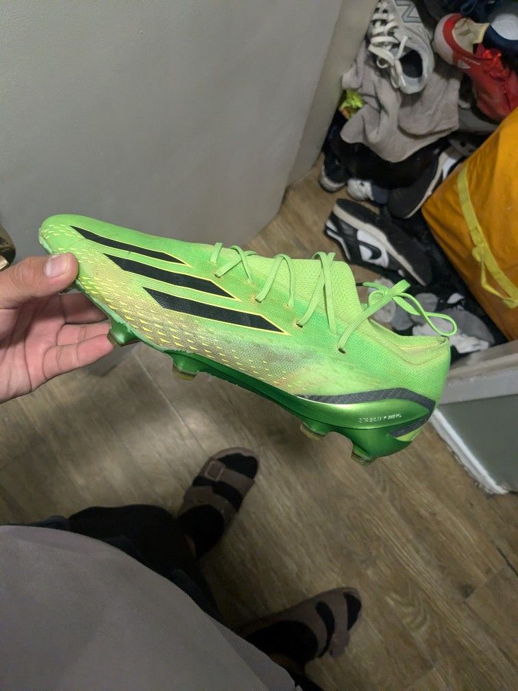 Size 11.5 Adidas X Speedportal 1. Elites I believe ik these had a green bag idk where it's at. It was a little tear on the side but still good