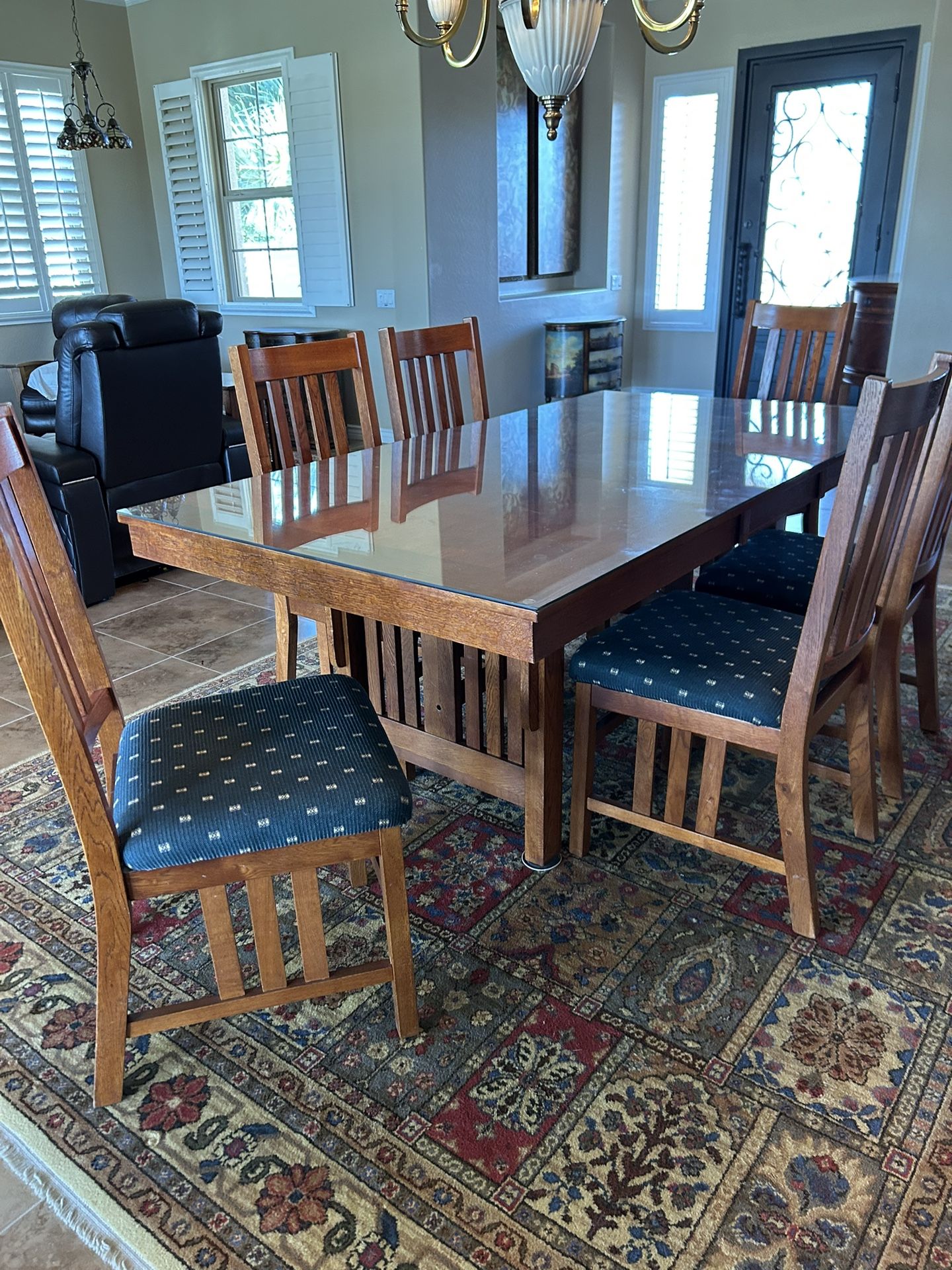 42” x 78” wood and six chairs, additional plate glass for protection. Located in Sun City West off W. Deer Valley Rd and West of N. El Mirage Rd. If you can see ad it is available.