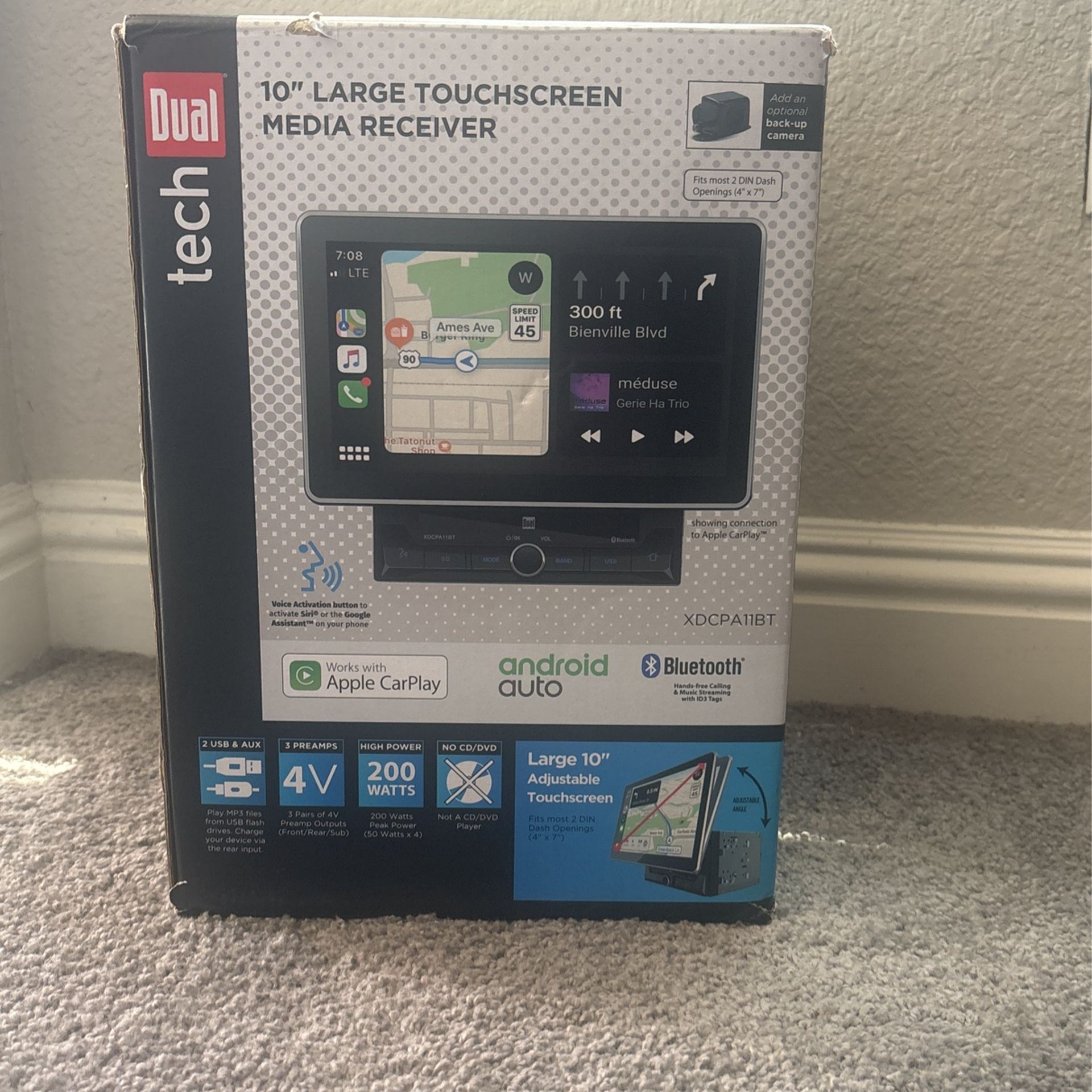 BRAND NEW (originally $280) Double Din Car Stereo - 10 inch Touchscreen Digital Car Radio, Bluetooth Multimedia Player. Backup Camera Visibility and Compatibility (camera sold separately) Apple Carplay and Android Auto through USB, Mirror Link 1 Second Instant-Boot AM/FM radio Fits Most Double DIN (4"x7) Dash Opening 1.8"D x 10"W x 6.3"H