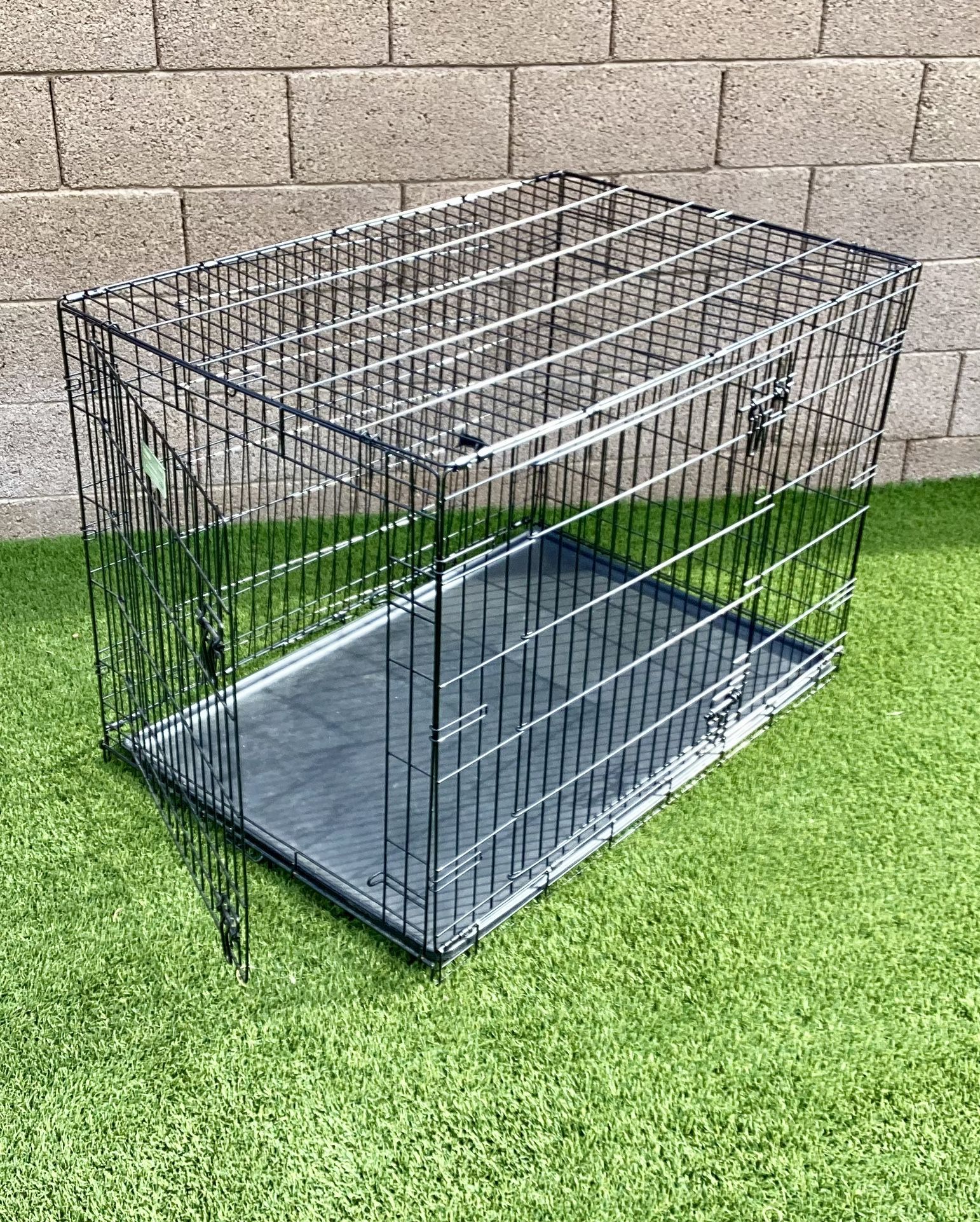 42” Two-Door iCrate Folding Dog Crate with Divider Panel, Leak-Proof Tray & Secure Latches – Metal Wire Kennel for Large Breeds – Portable, Durable & Easy to Assemble -Two doors -Slide-bolt door latches -Measures 42” L x 28” W x 31”H -Suitable for large dog breeds - 70-90 pounds -Durable & leak-proof plastic pan and carrying handle -Portable and conveniently folds flat for travel Great condition and clean $50, cash only 42” Two-Door iCrate Folding Dog Crate Kennel Leak-Proof Tray Secure Latches Metal Large Breeds
